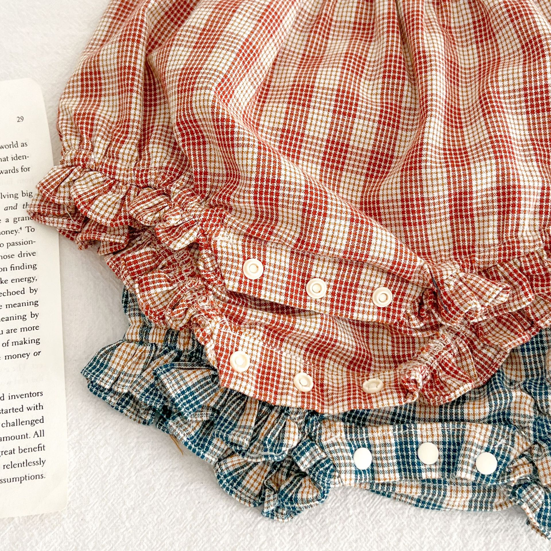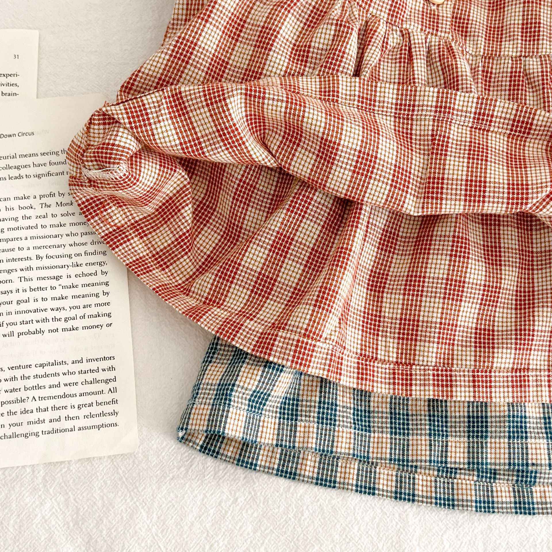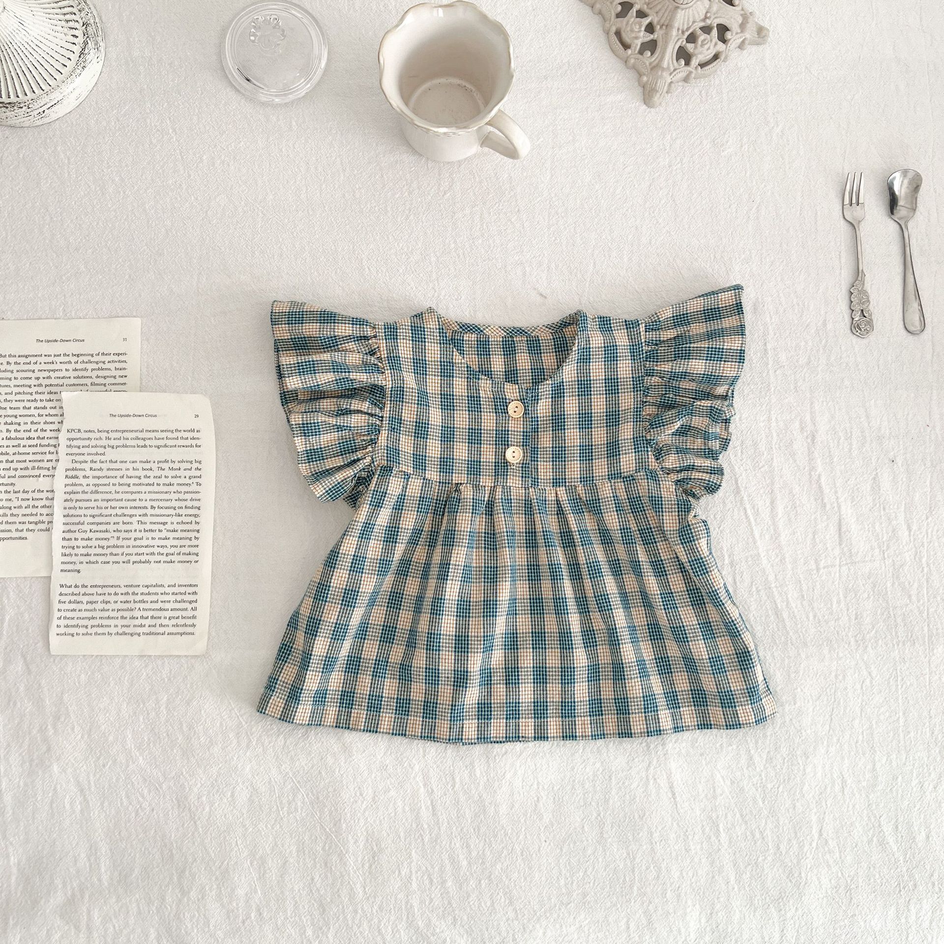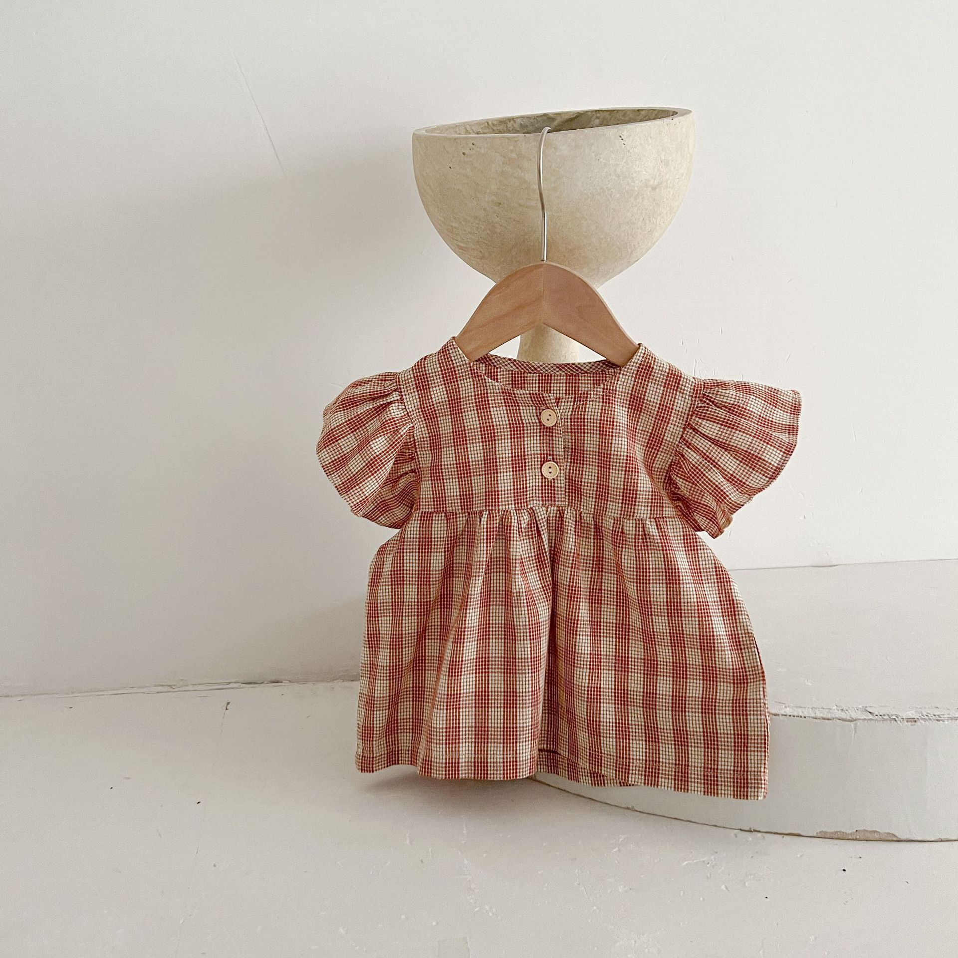 아기 여름 새로운 비행 소매 격자 무늬 인형 셔츠 반바지 세트 아기 소녀 스타일리스트 탑 + 가방 방귀 투피스 세트스토어 가기