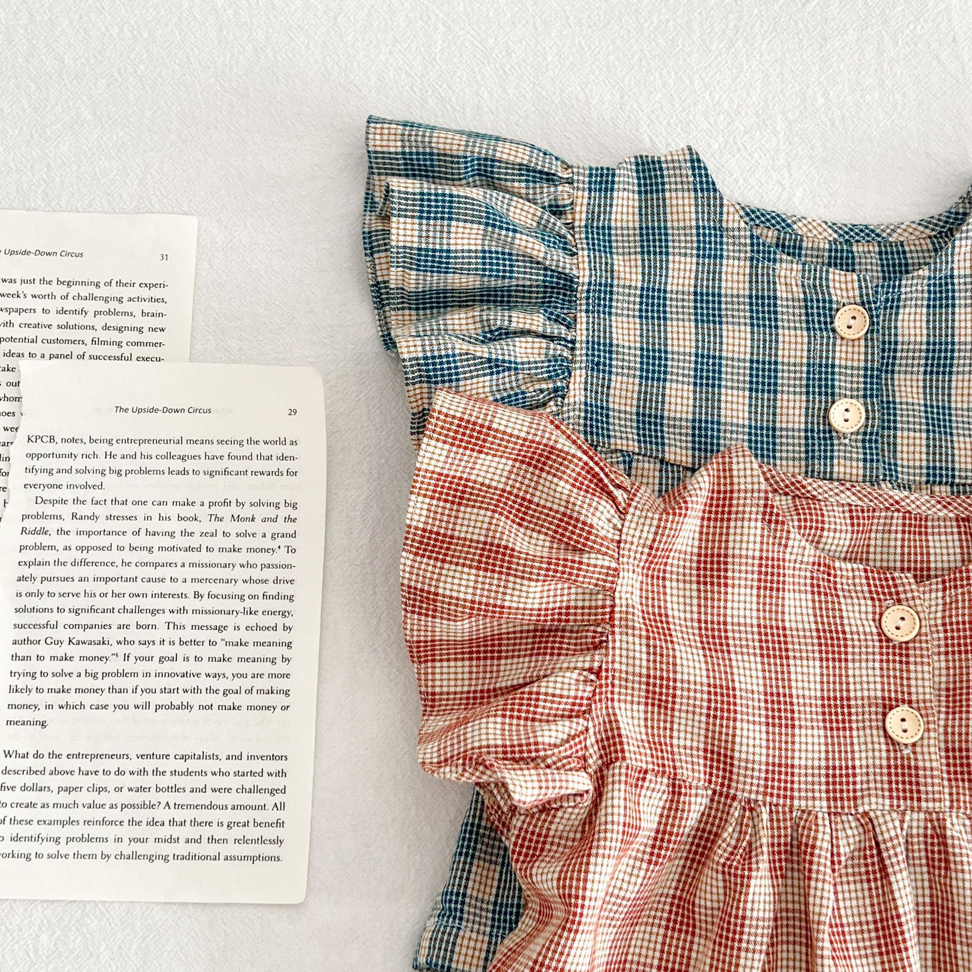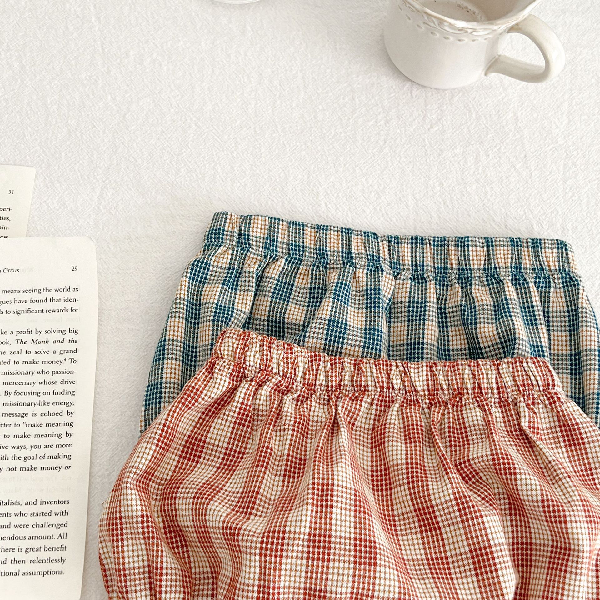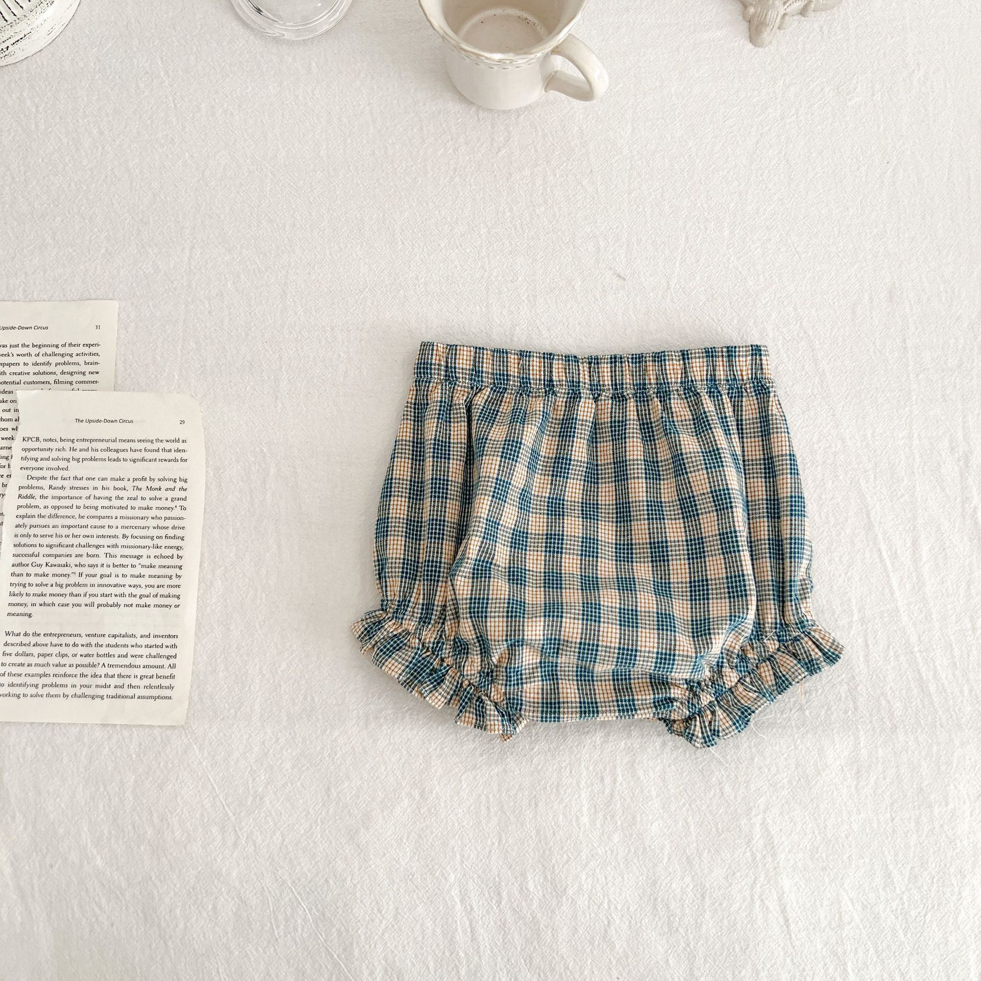 아기 여름 새로운 비행 소매 격자 무늬 인형 셔츠 반바지 세트 아기 소녀 스타일리스트 탑 + 가방 방귀 투피스 세트