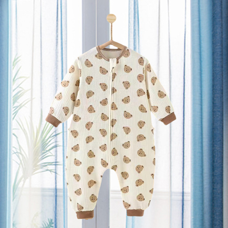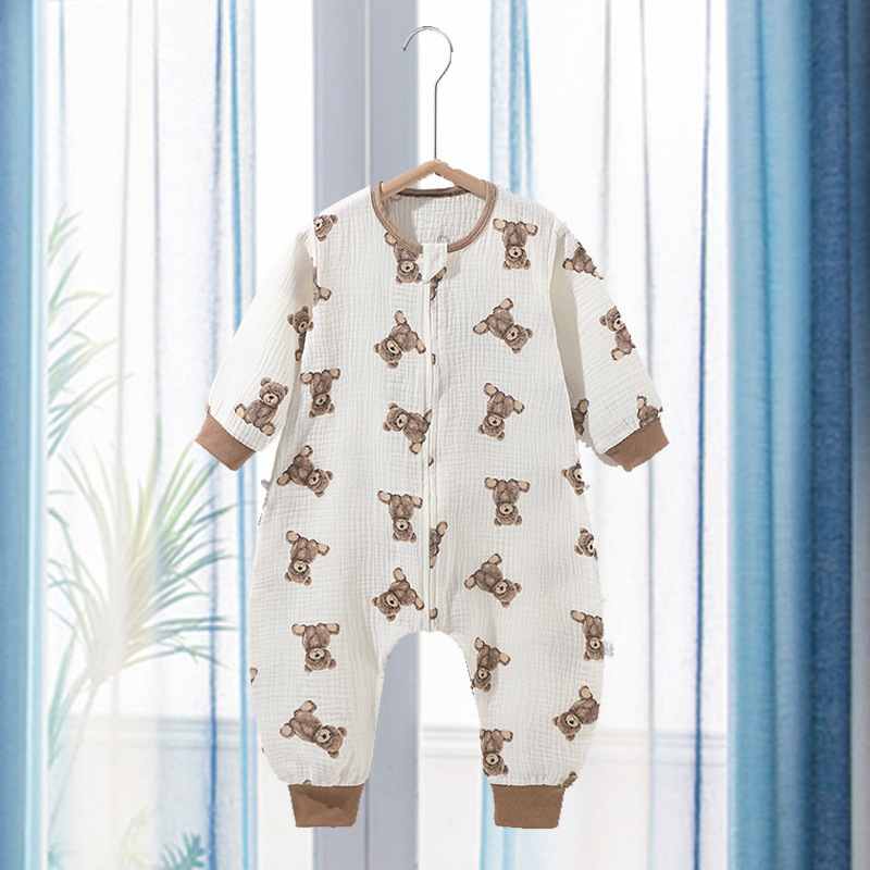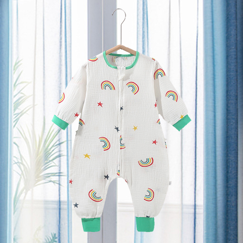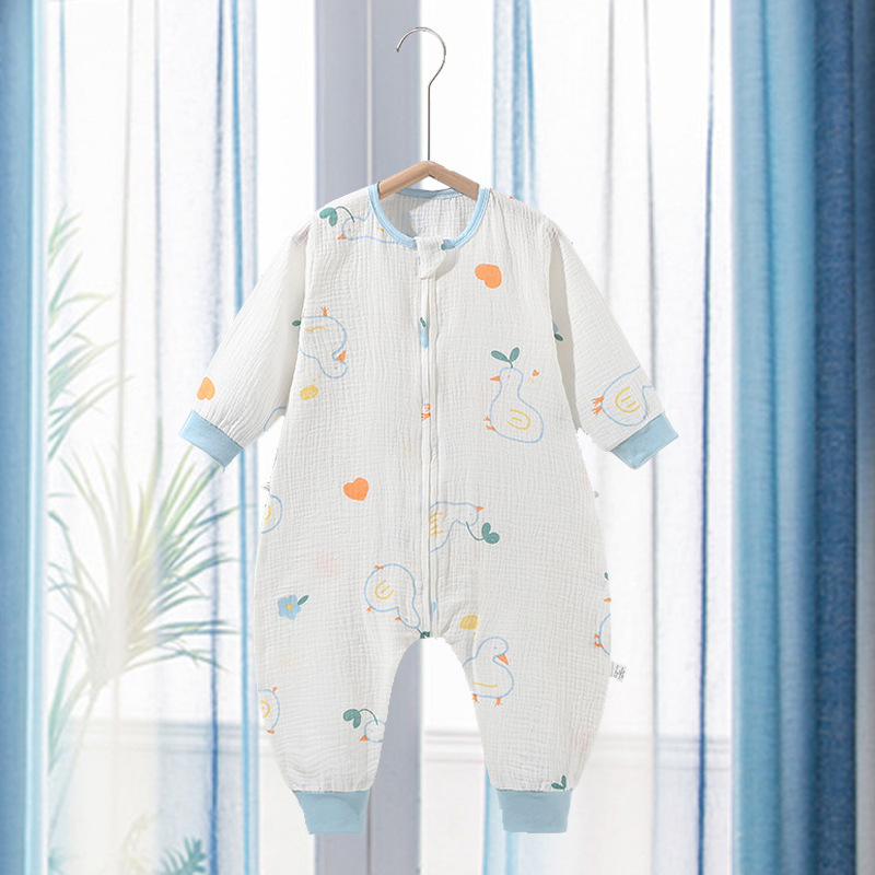 아기의 다리 침낭 여름 얇은 아기의 귀여운 슈퍼 귀여운 잠옷 2 층 거즈 시어서커 어린이 킥 방지 이불스토어 가기