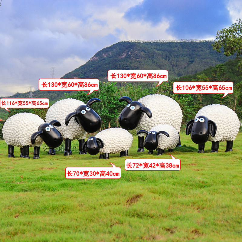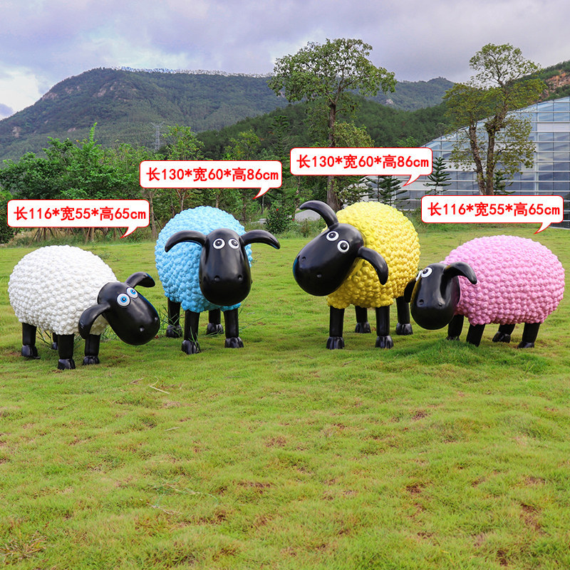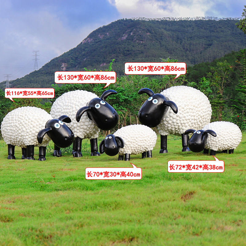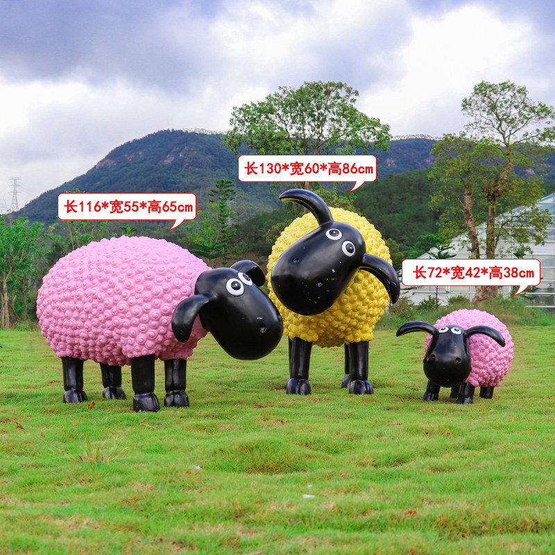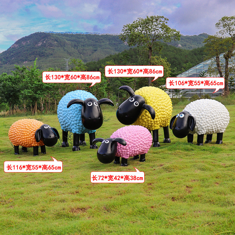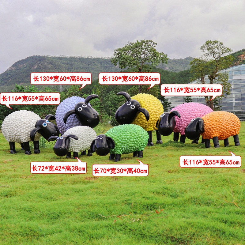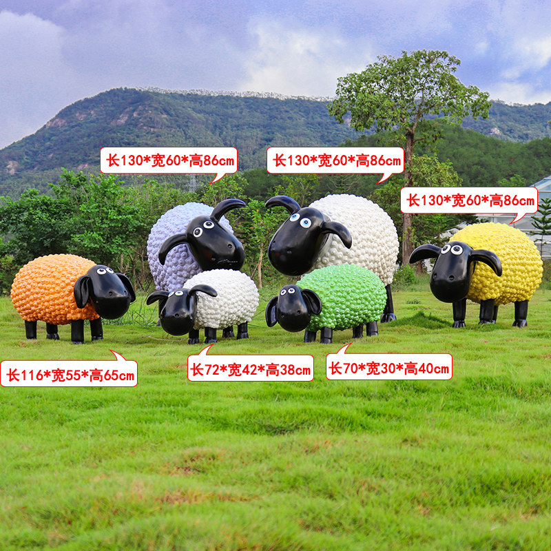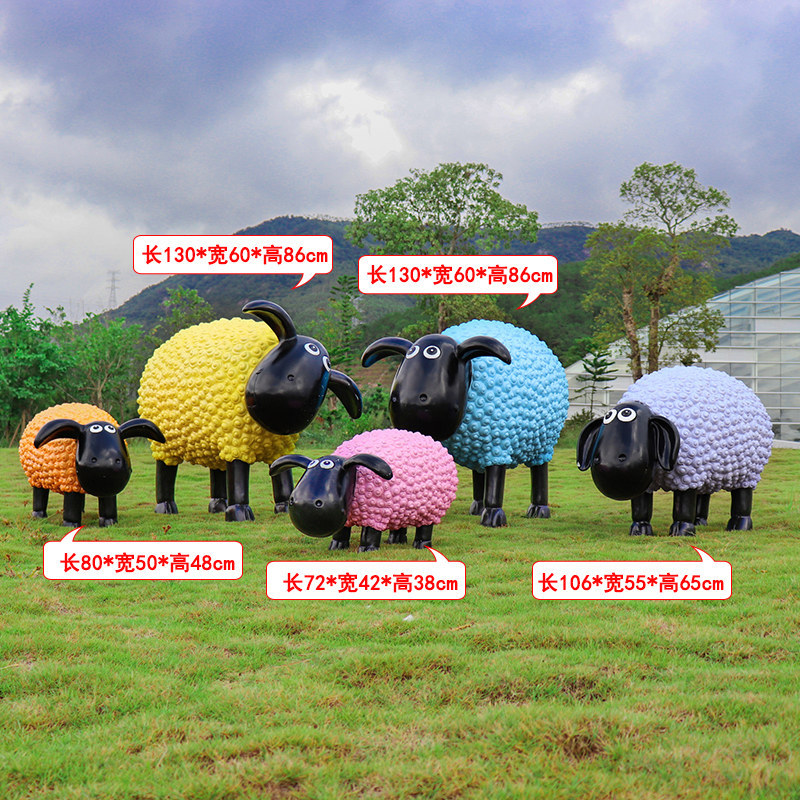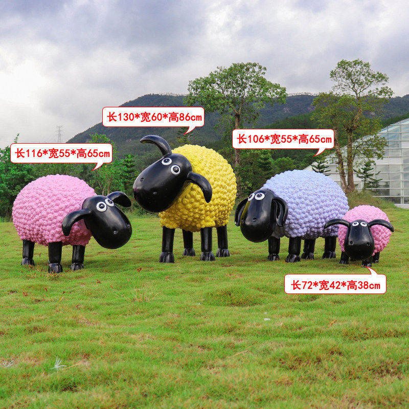 야외 유리 강철 만화 양 조각 공원 잔디 유치원 숲 장식 시뮬레이션 동물 풍경 스케치 장식품스토어 가기