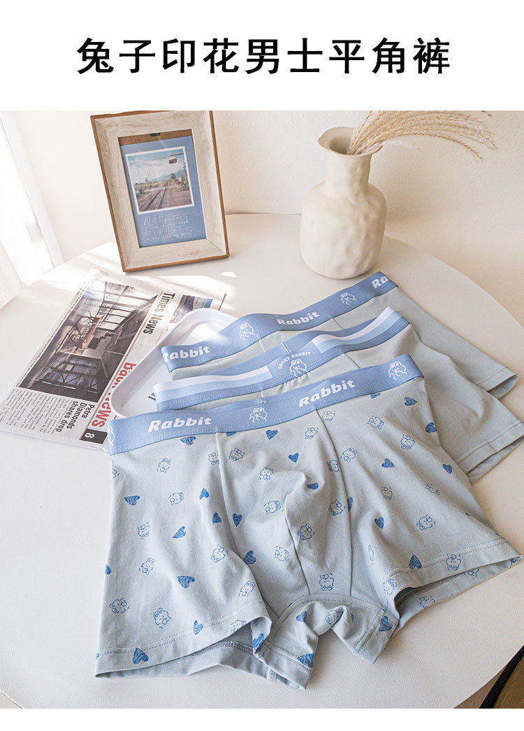 25년 신제품 남성 속옷 미드 웨이스트 만화 토끼 모달 코튼 복서 팬티 프린트 복서 팬티 통기성