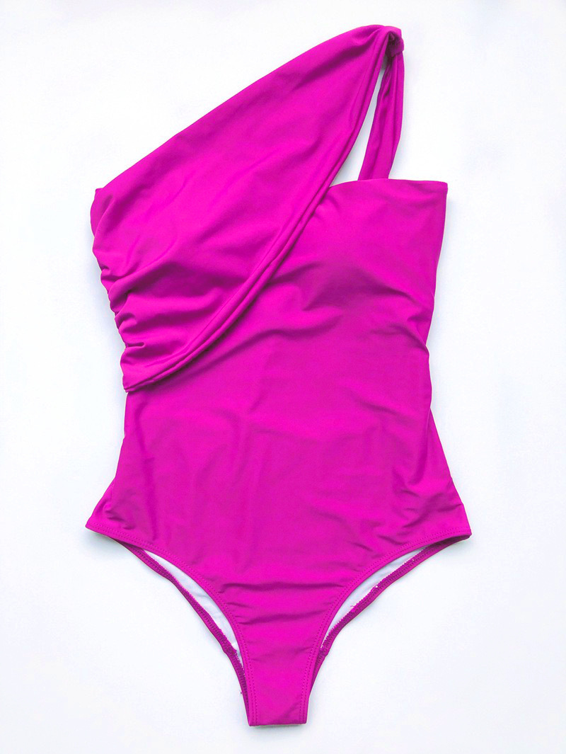 2023 원피스 수영복 여성용 비스듬한 어깨 튜브 가슴 단색 나일론 섹시 아마존 AliExpress 중형 사이즈스토어 가기
