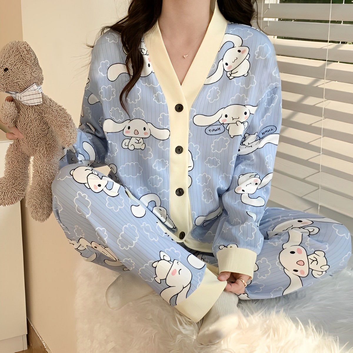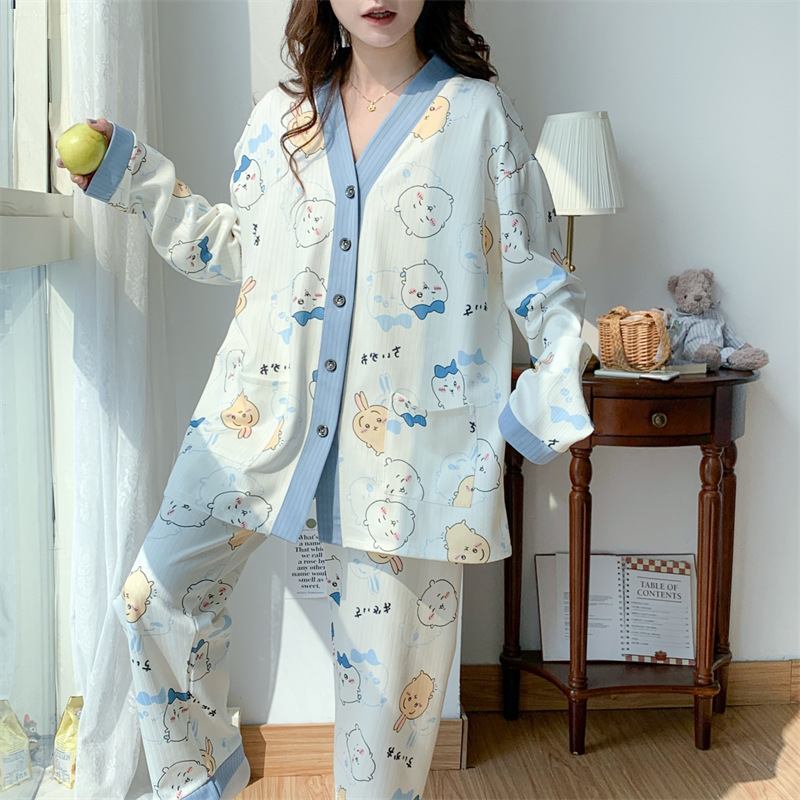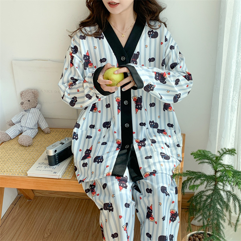 뚱뚱한 MM300 진 플러스 사이즈 잠옷 여자의 여름 얇은 달콤한 귀여운 공주 스타일 가정 옷 느슨한 세트스토어 가기