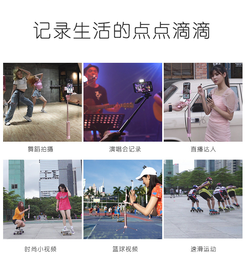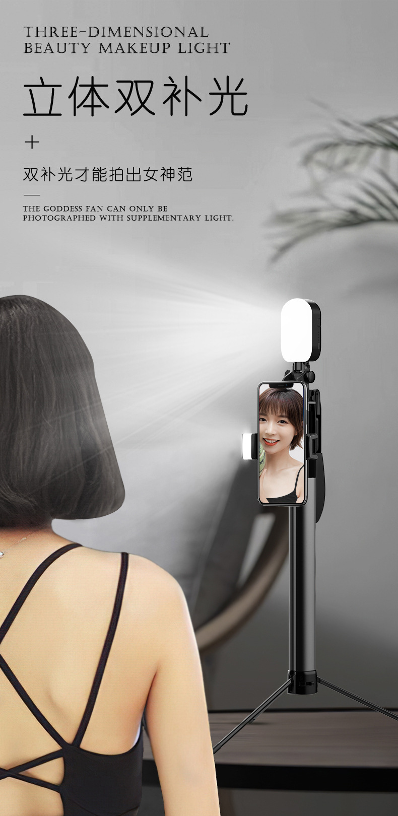 쌓인 셀카봉 Douyin 원격 제어 셀카 짧은 비디오 촬영 라이브 방송 필인 라이트 휴대폰 스탠드 데스크탑 플로어 스탠딩 이중 용도