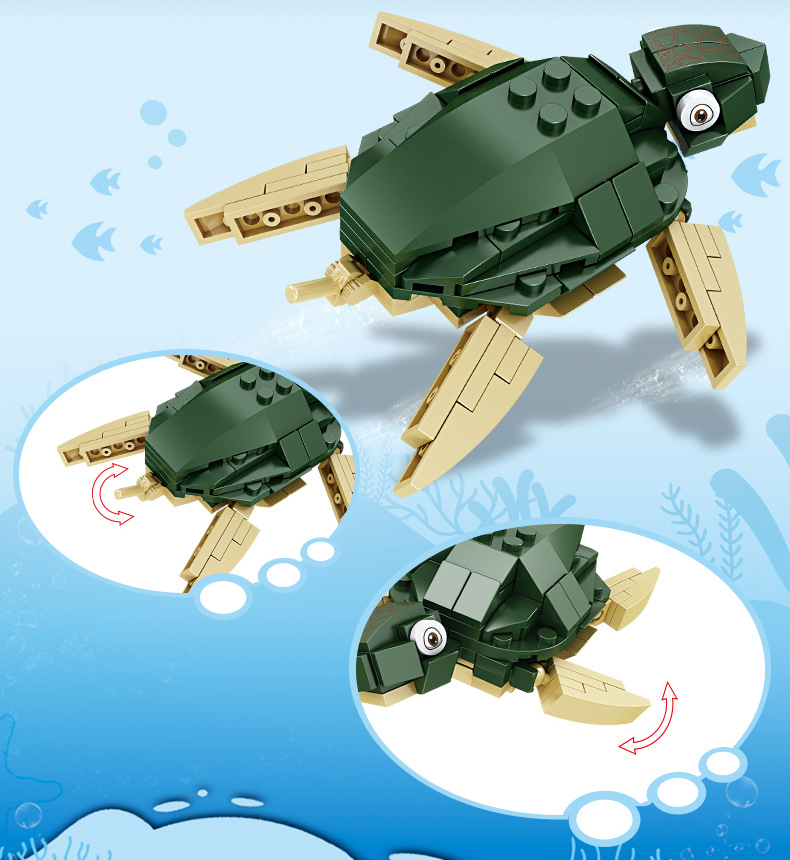 호환 레고 수중 세계 거북이 고래 해마 상어 모델 퍼즐 조립 어린이 장난감 선물