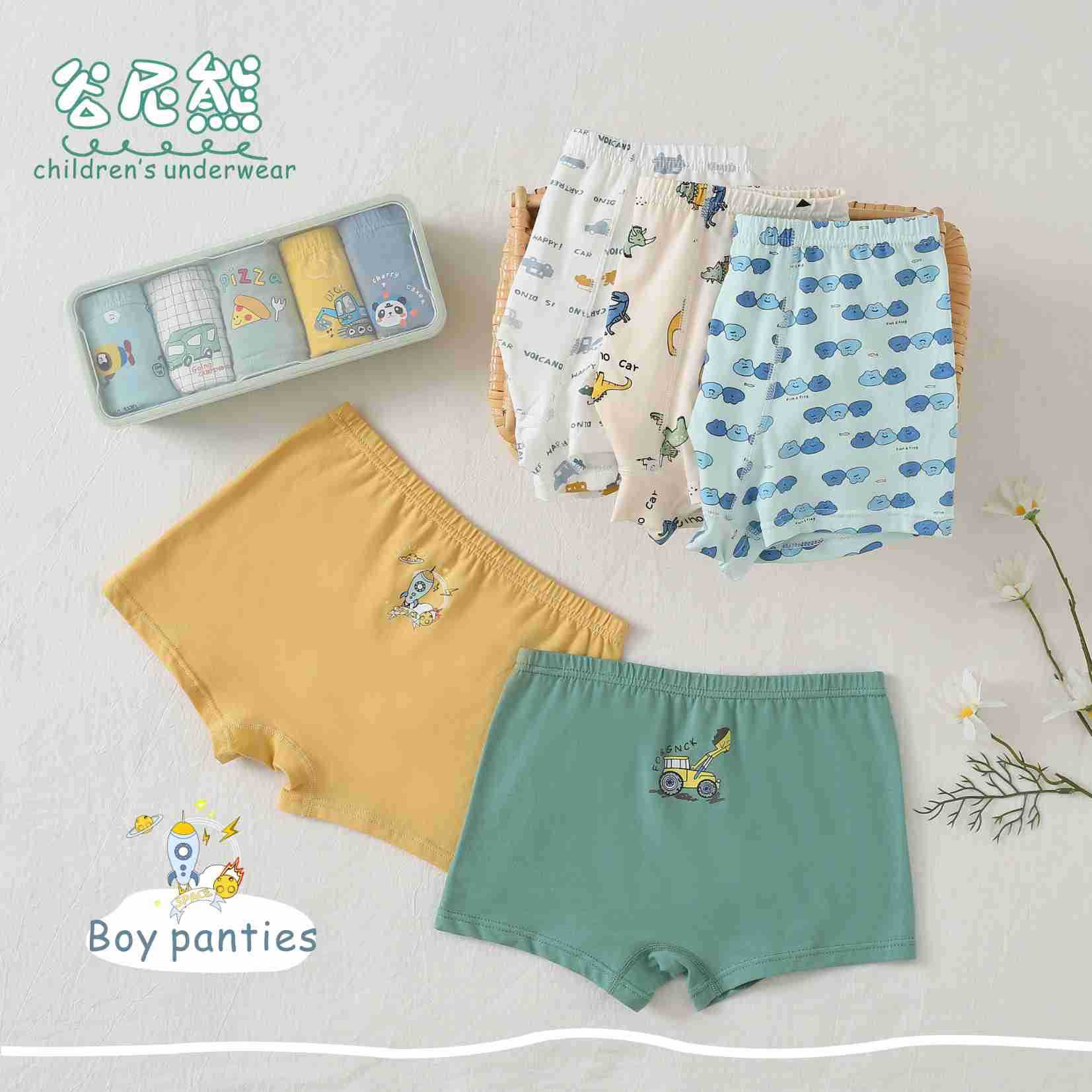 Gu Nixiong 소년 소녀 복서 반바지 얇은 면 어린이 반바지 귀여운 만화 속옷 2-16 세 선물 상자 5 팩