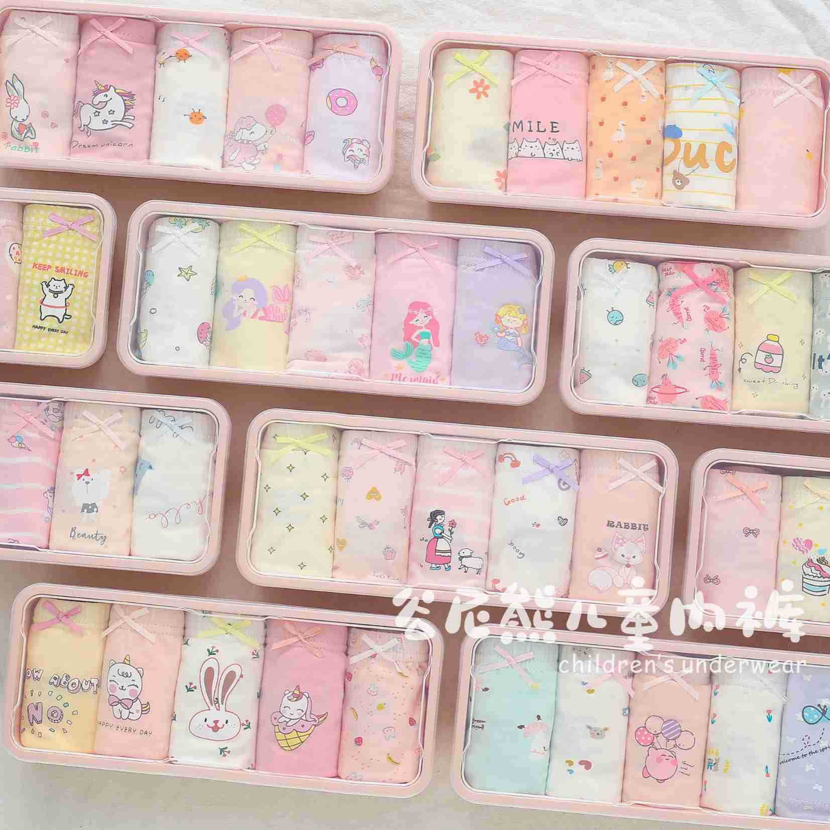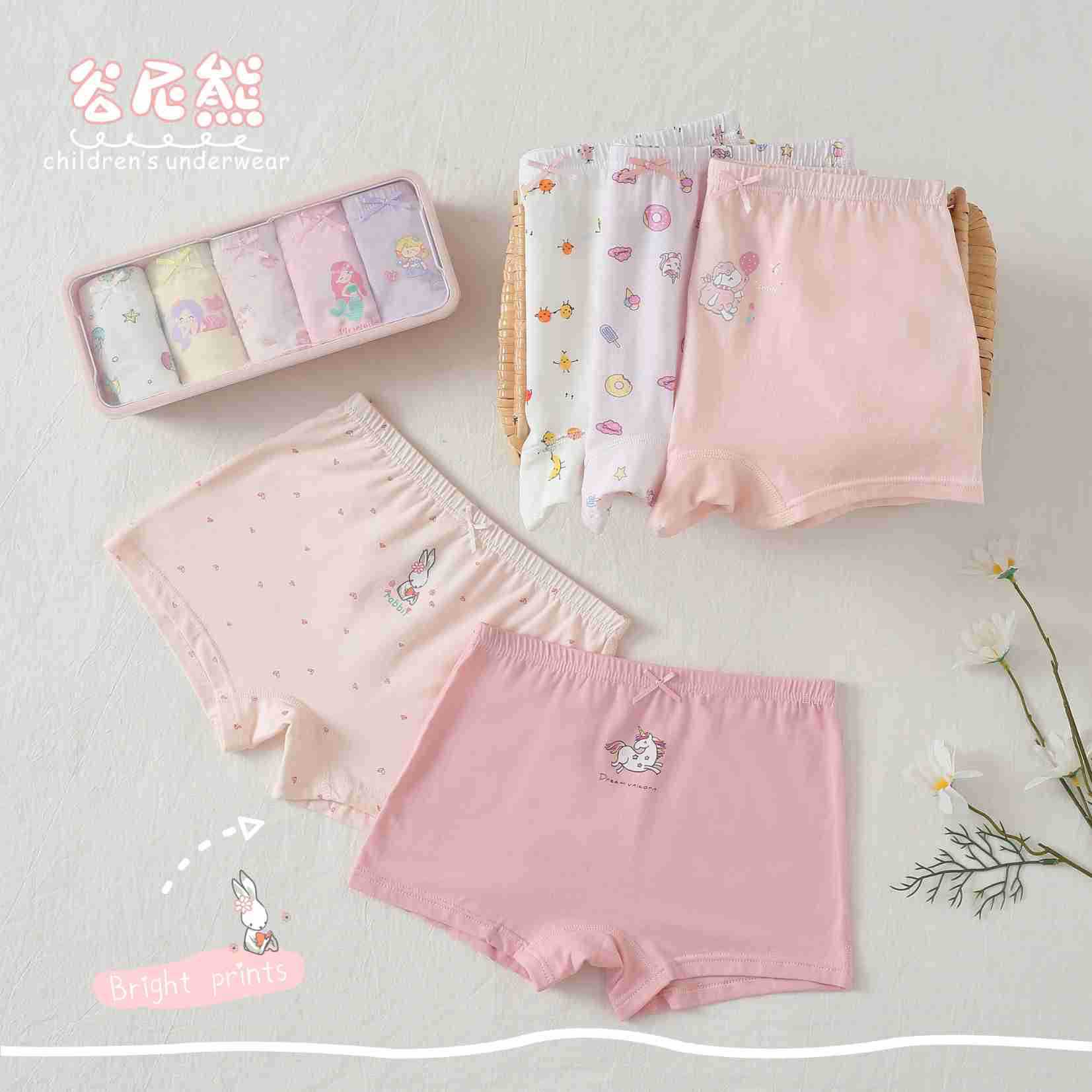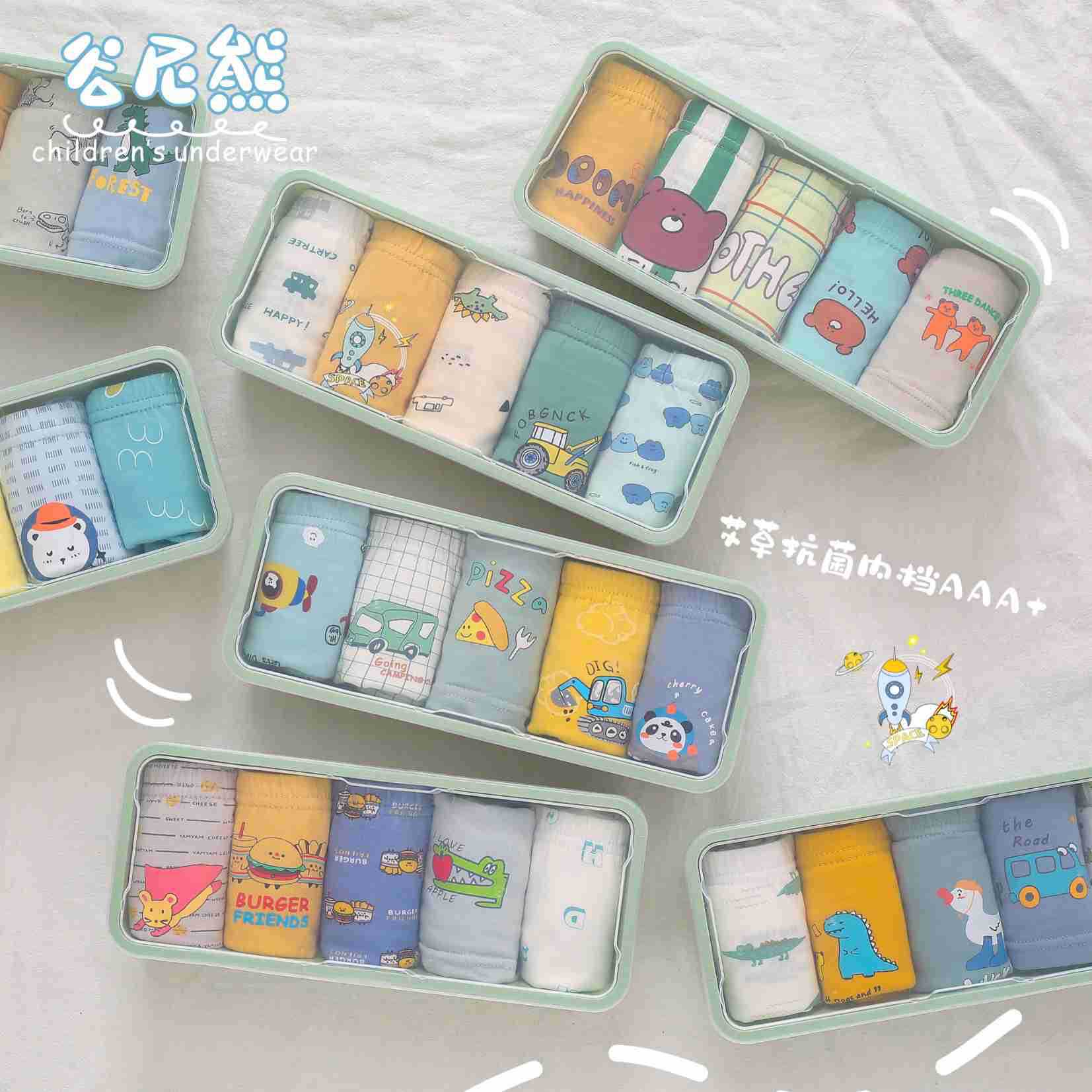 Gu Nixiong 소년 소녀 복서 반바지 얇은 면 어린이 반바지 귀여운 만화 속옷 2-16 세 선물 상자 5 팩스토어 가기