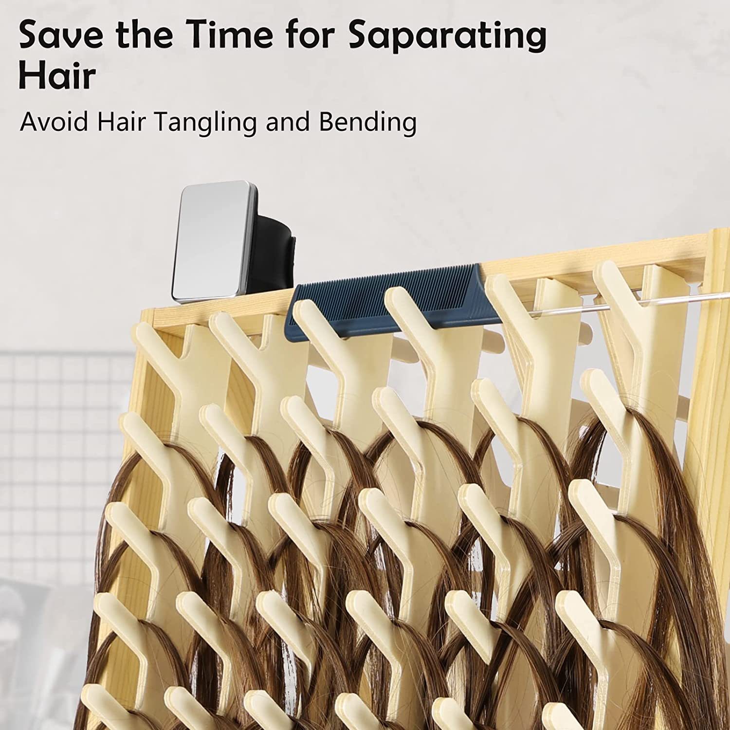 헤어 살롱 나무 헤어 랙 벽에 장착 된 나무 짠 헤어 랙 다기능 단단한 나무 스풀 랙 헤어 확장 브래킷