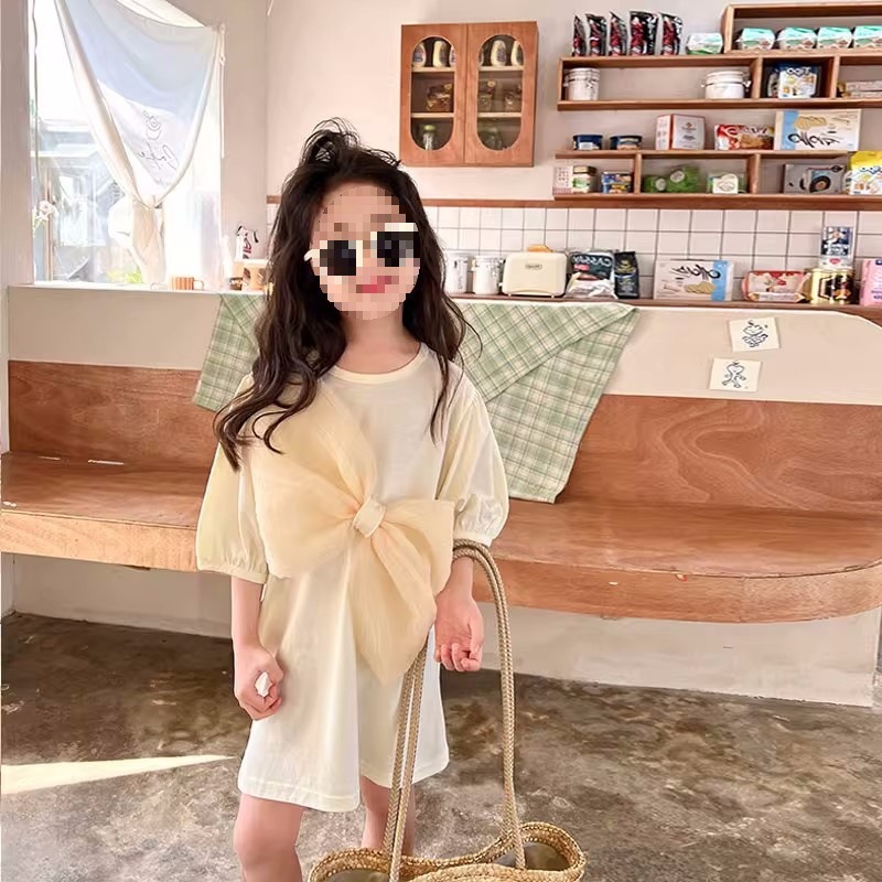 여자 드레스 빅 보우 드레스 스웨트 드레스 25 여름 드레스 새로운 대외 무역 아동 의류 배송 3-8 세스토어 가기