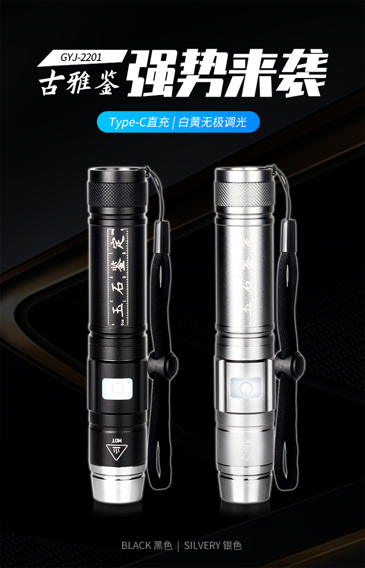 • 배터리 없는 실버-3 개의 광원 [화이트 + 옐로우 + 퍼플 라이트 365] 무단 디밍 (컬러 박스 + 충전 라인 + 콘덴서 헤드)