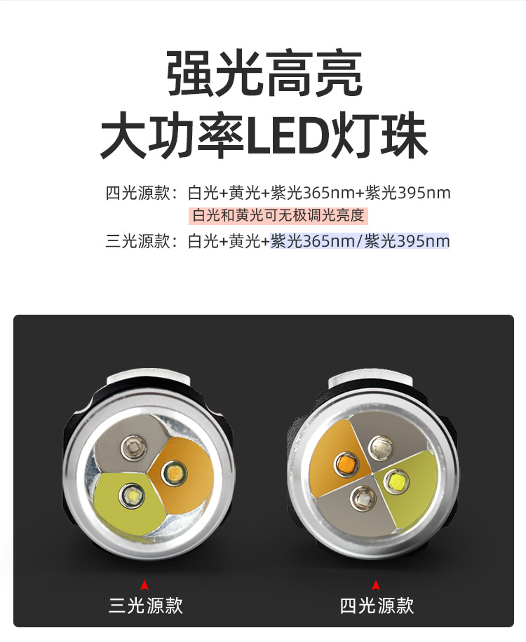 • 블랙-배터리 없는 3 개의 광원 [화이트 + 옐로우 + 퍼플 라이트 365] 무단 디밍 (컬러 박스 + 충전 라인 + 콘덴서 헤드)