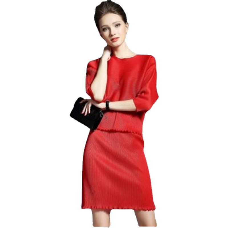 2025 봄 신상 여성 명사 스타일 슬림핏 솔리드 컬러 플리츠 원피스 힙 커버 슈트 스커트스토어 가기