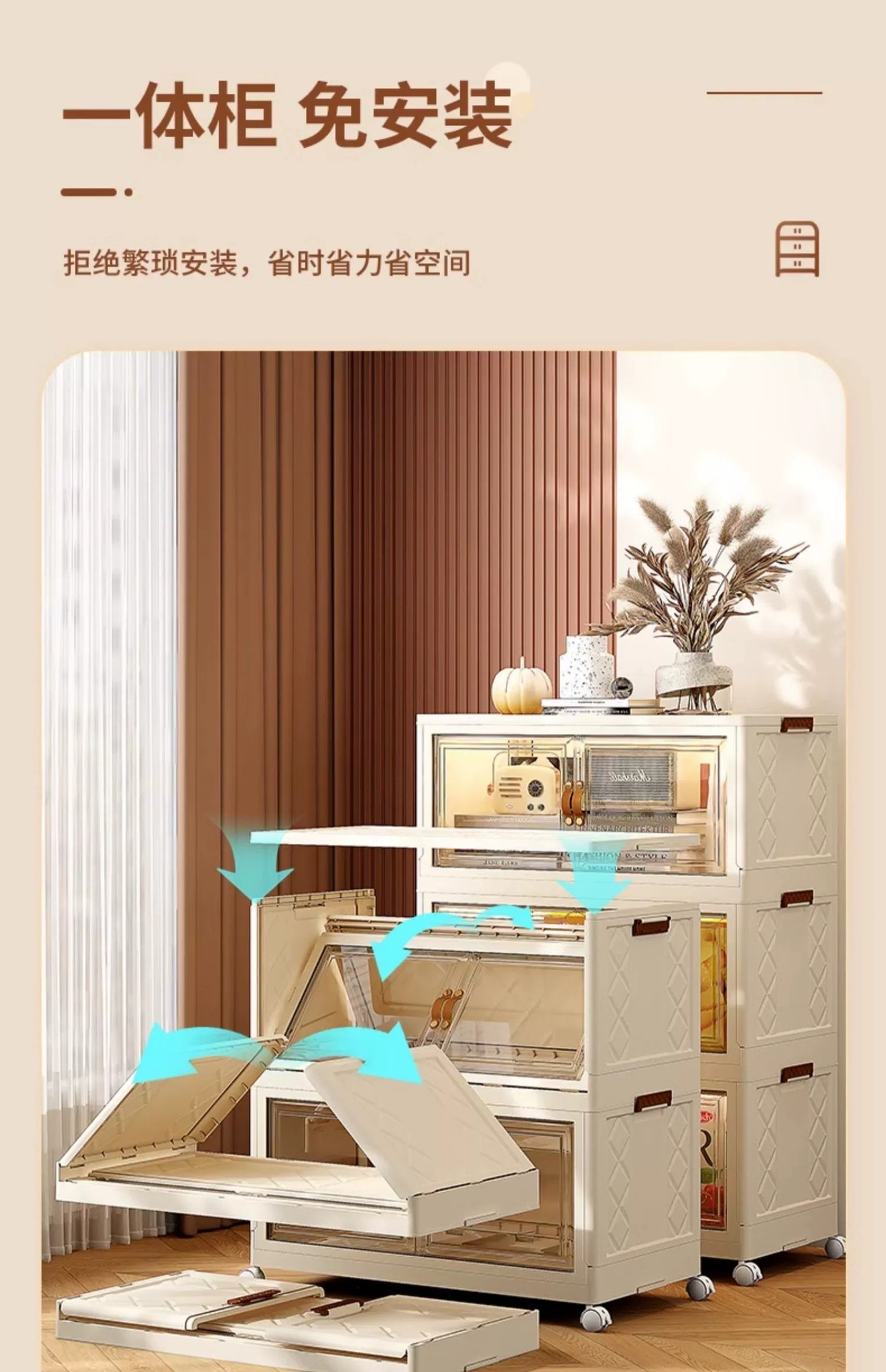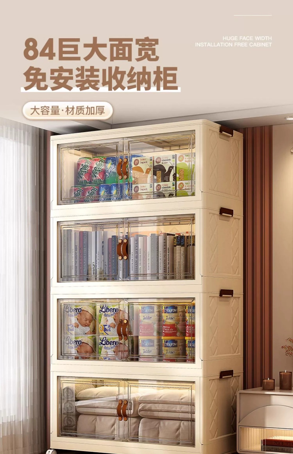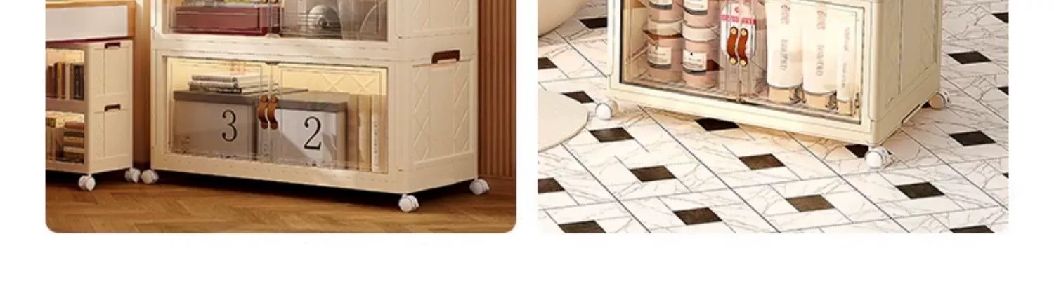 국경 간 플라스틱 보관 캐비닛 주방 보관 랙 접이식 보관 캐비닛 다기능 간단한 방진 거실 보관 캐비닛스토어 가기
