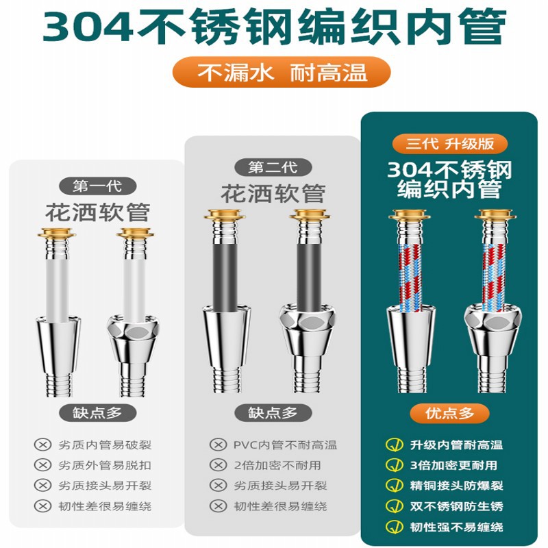스테인레스 스틸 샤워 두꺼운 호스 샤워 호스 폭발 방지 샤워 노즐 물 파이프 전기 도금 금속 호스 2 m 3 m