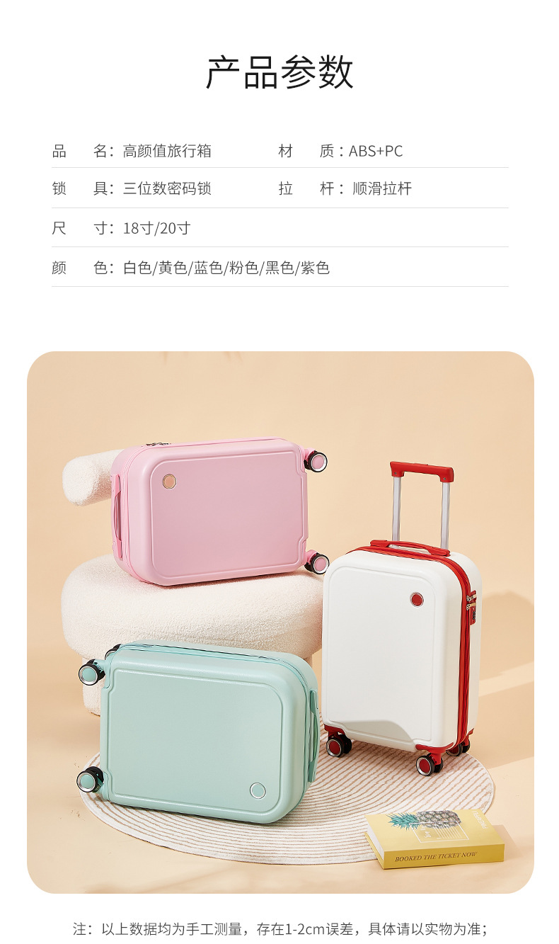 여성용 여행가방 18inch 기내용 여행가방 튼튼하고 내구성이 뛰어난 소형 비밀번호 가죽 가방 조용하고 가벼움스토어 가기