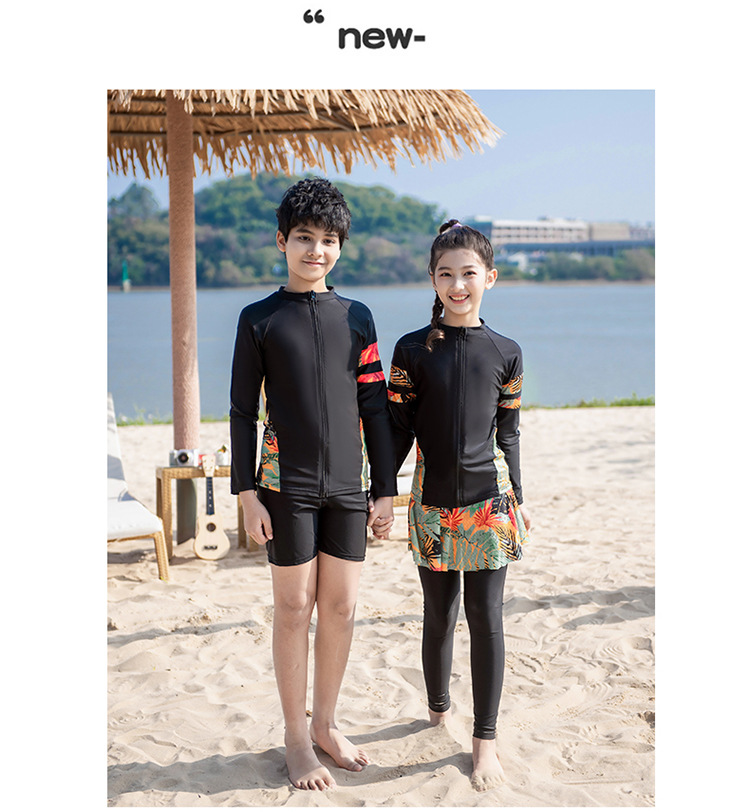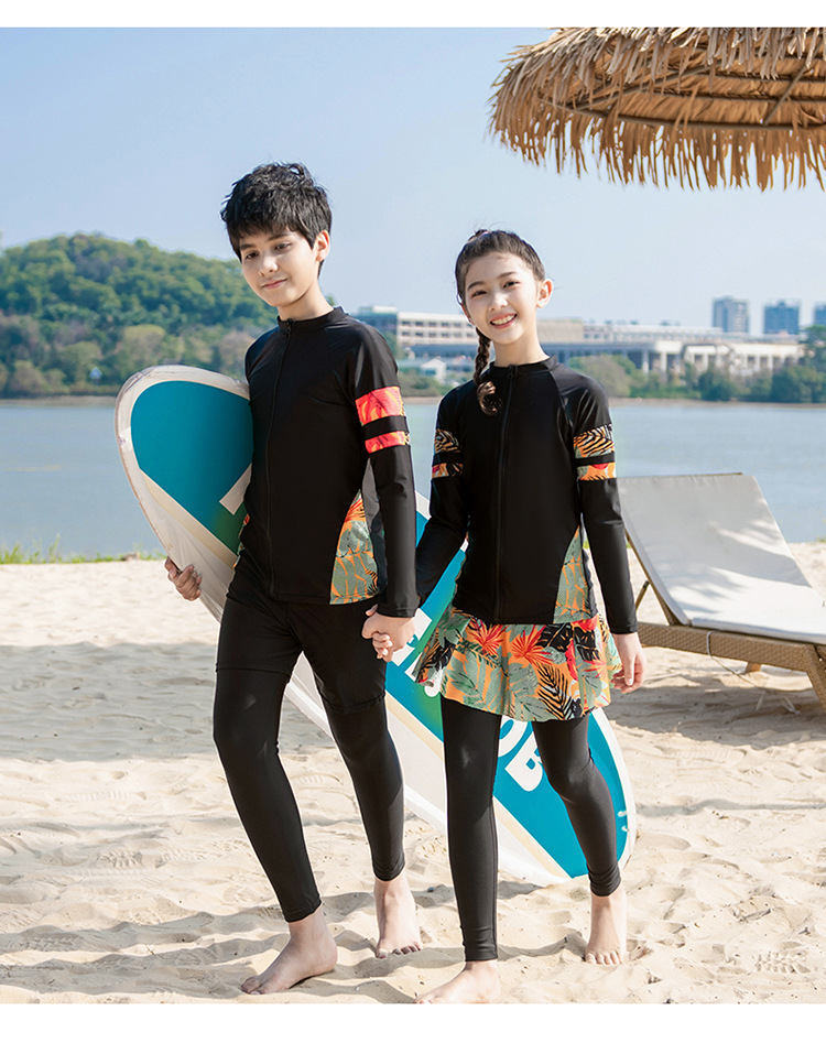 새로운 남성과 여성의 크기 어린이 긴 소매 다이빙 세트 분할 세트 태양 보호 보수적 인 귀여운 해변 수영복스토어 가기