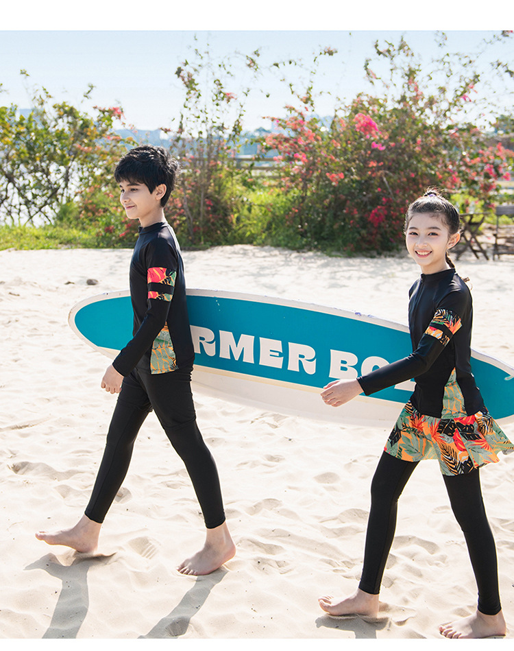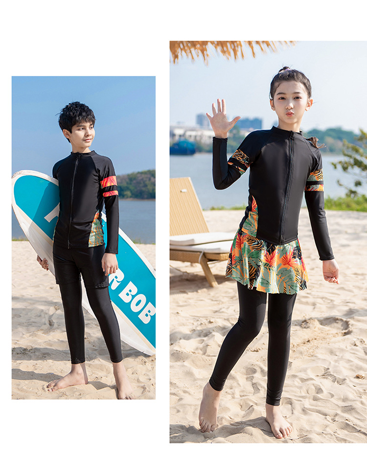 새로운 남성과 여성의 크기 어린이 긴 소매 다이빙 세트 분할 세트 태양 보호 보수적 인 귀여운 해변 수영복