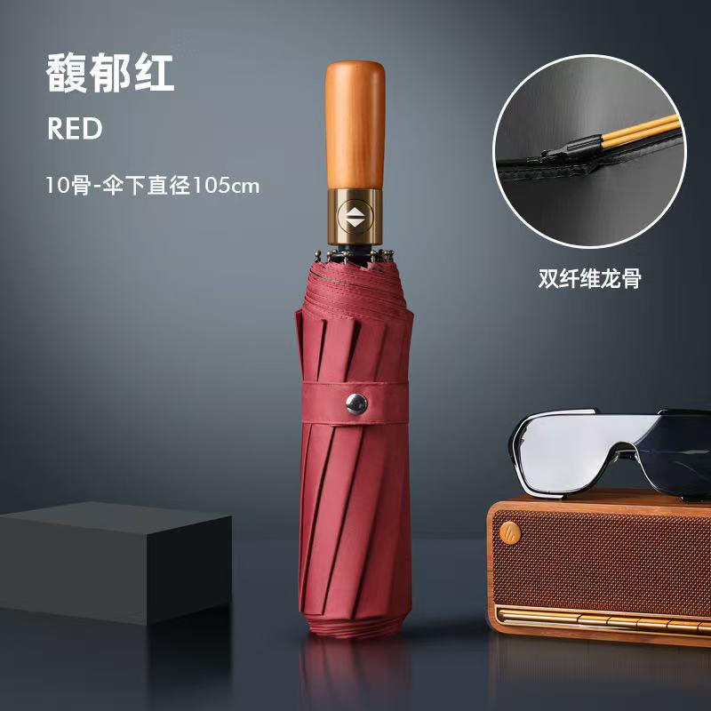 • 23inch 자동비닐/10본더블본/나무직선손잡이/버건디