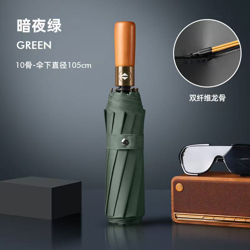 • 23inch 자동비닐/10본3+1/나무곡선손잡이/짙은녹색