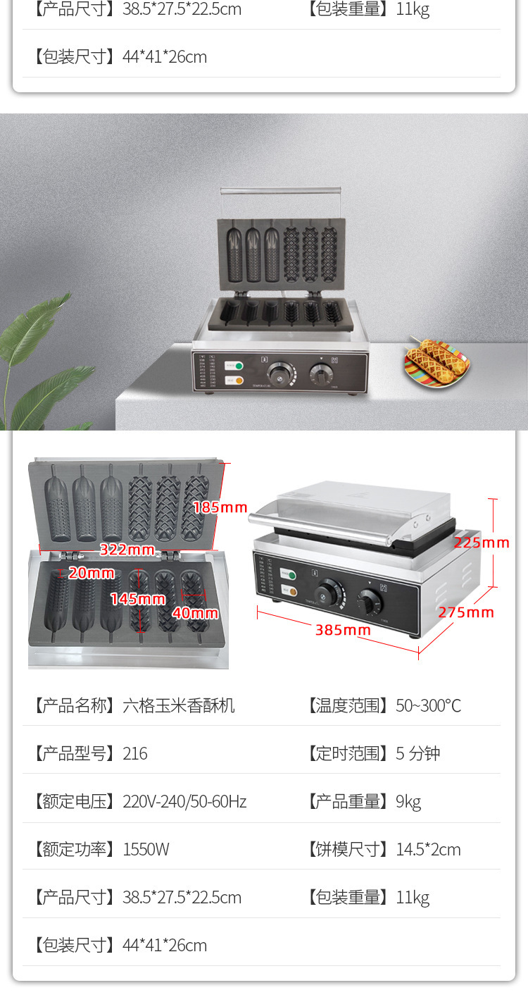 상업용 싱싱한 전기 기계식 핫 덴마크 우유 스틱 기계 6 그리드 우유 스틱 기계 싱싱한 크림 스틱 옥수수 핫도그 기계