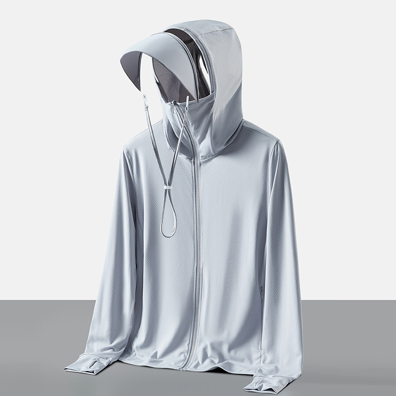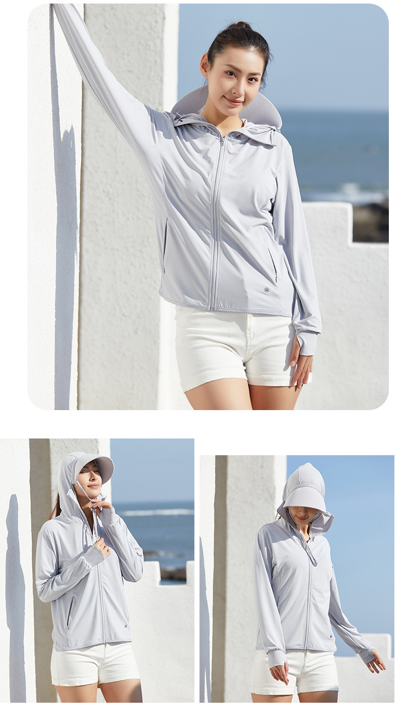 Jiaoxia 같은 스타일 선 스크린 의류 여성 여름 얼음 피부 의류 안티 자외선 통기성 탈착식 모자 챙 낚시 의류 남성