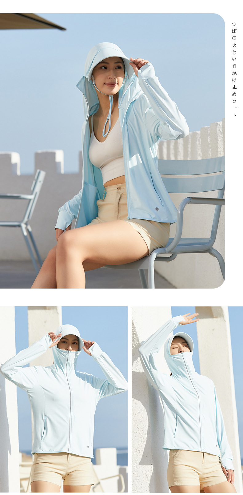 Jiaoxia 같은 스타일 선 스크린 의류 여성 여름 얼음 피부 의류 안티 자외선 통기성 탈착식 모자 챙 낚시 의류 남성스토어 가기