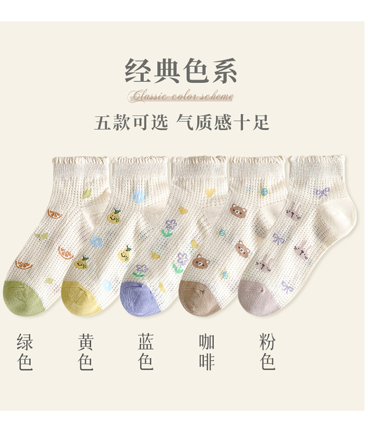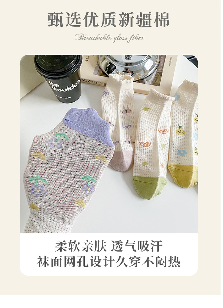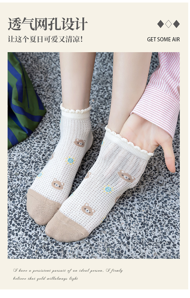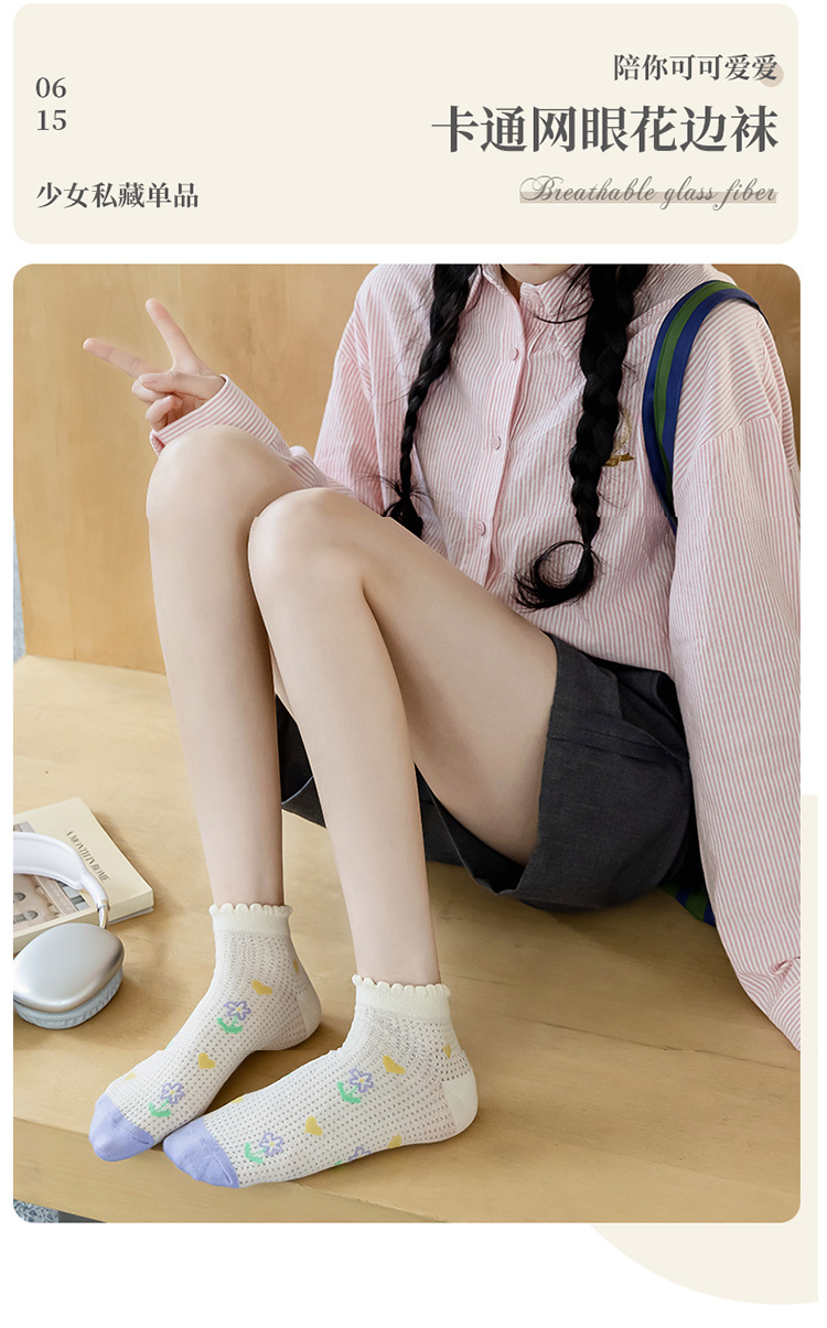 양말 여성용 봄과 여름 귀테 보트 양말 여성용 여름 얇은 짧은 튜브 여성용 양말 메쉬 통기성 양말 만화 면 양말