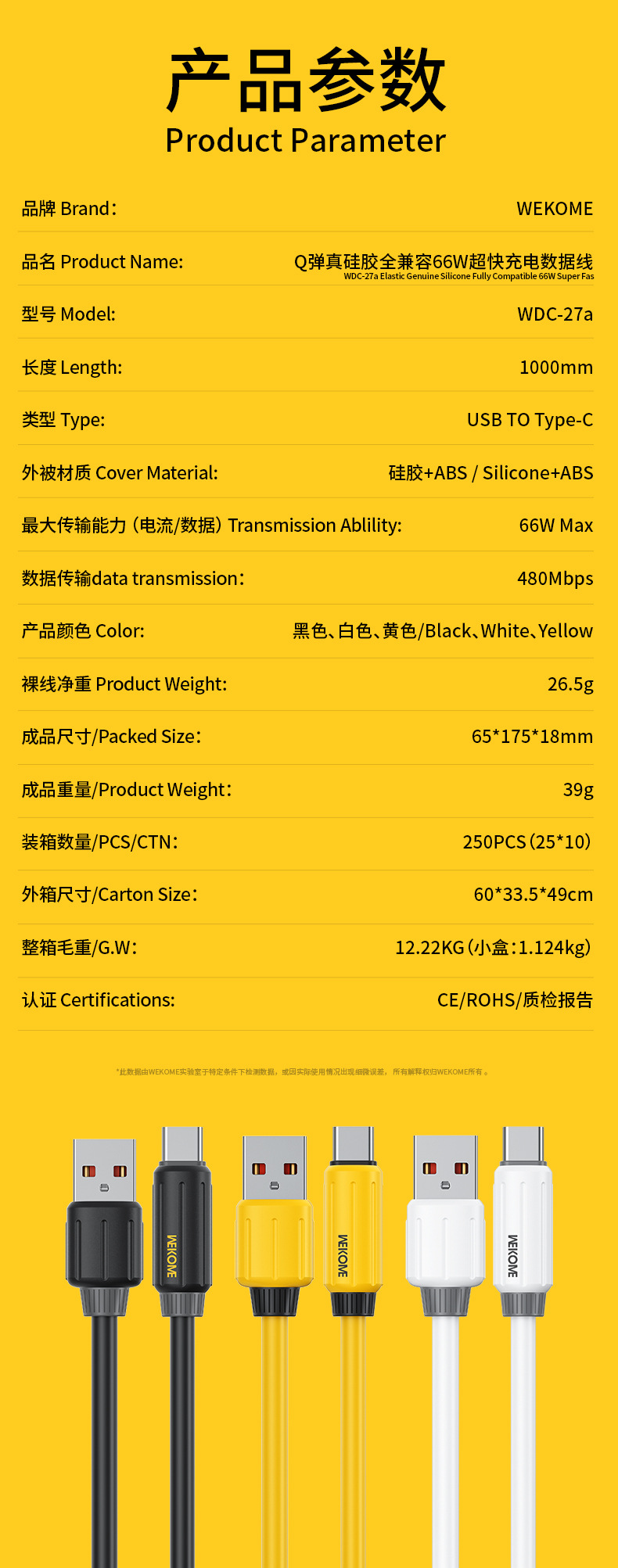 WEKOME 트루 Q 폭탄 액체 실리콘 PD12/30/65W 데이터 라인 울트라 빠른 충전 휴대 전화 TYPE-C 충전 라인스토어 가기