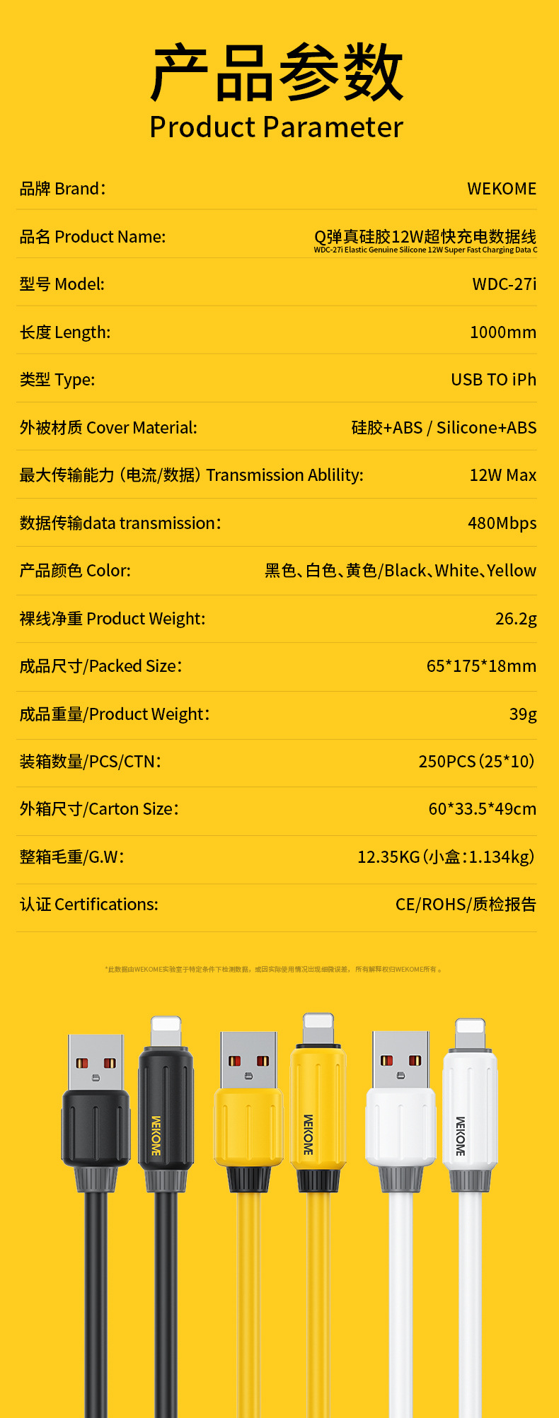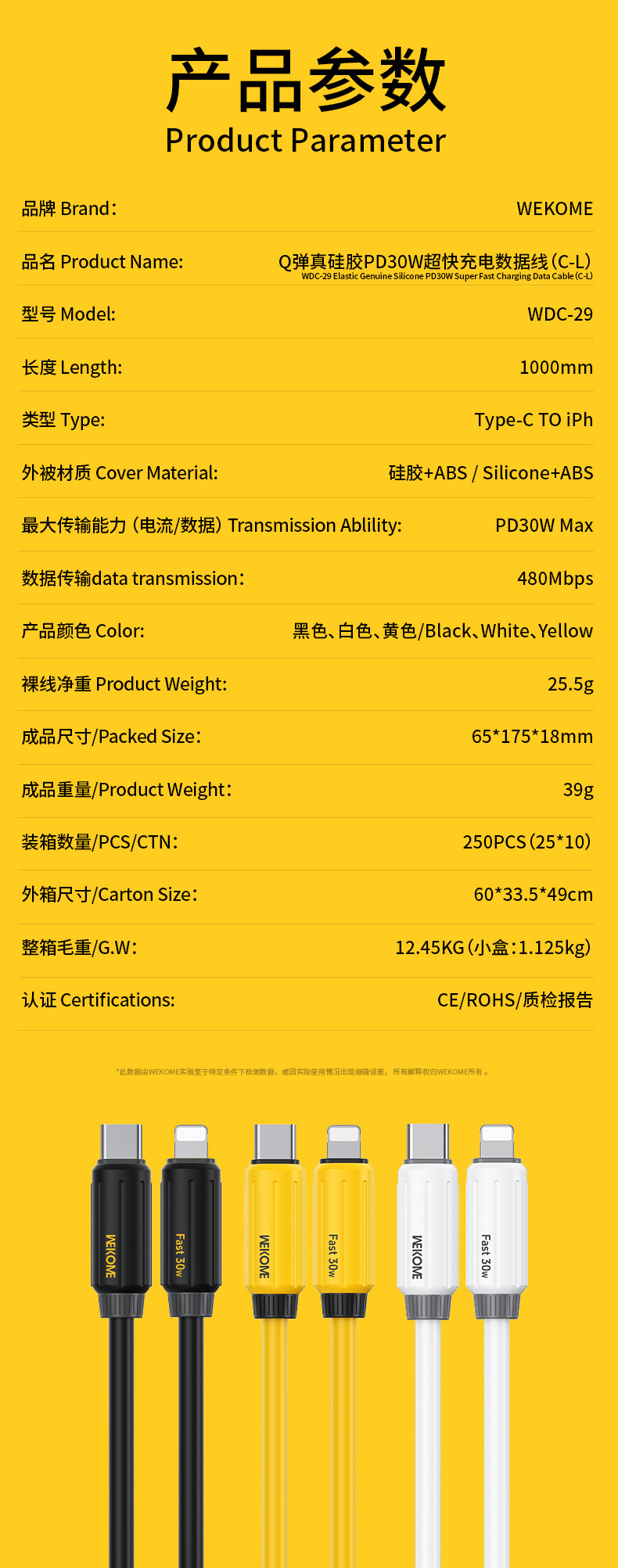 WEKOME 트루 Q 폭탄 액체 실리콘 PD12/30/65W 데이터 라인 울트라 빠른 충전 휴대 전화 TYPE-C 충전 라인