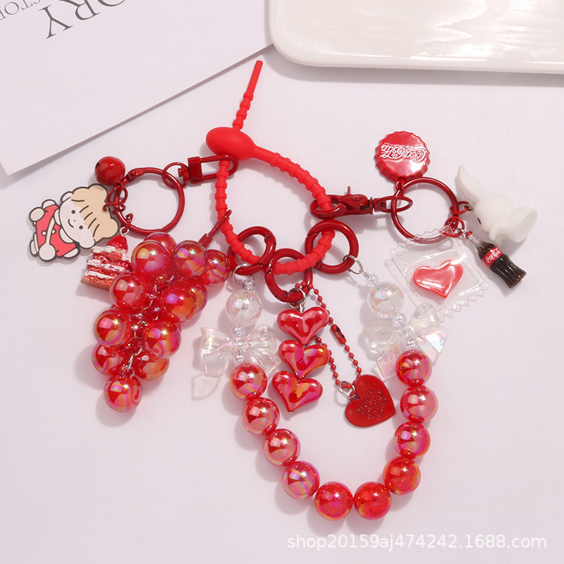 DIY 포도 문자열 인터넷 연예인 키 체인 펜던트 귀여운 수지 인형 아크릴 만화 태그 가방 액세서리