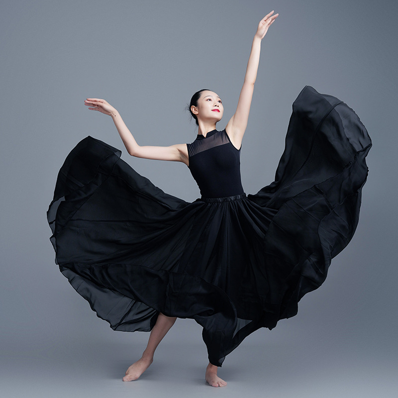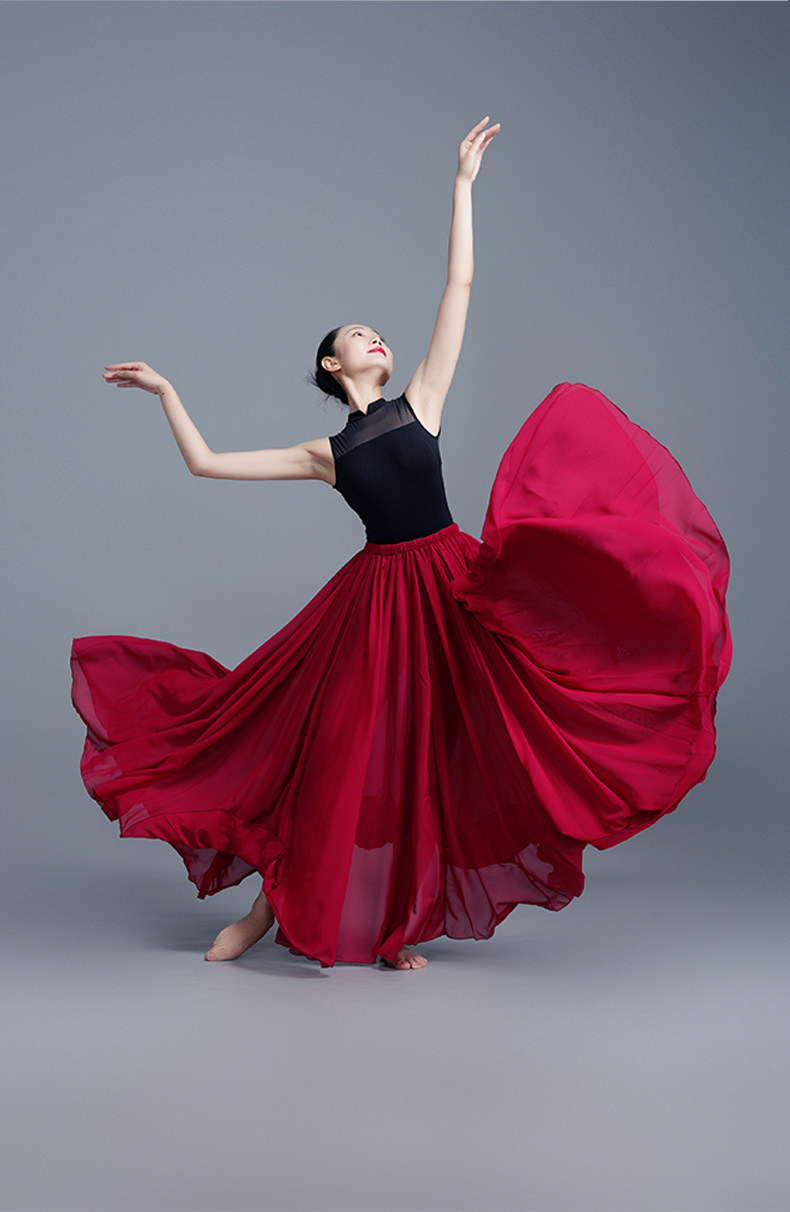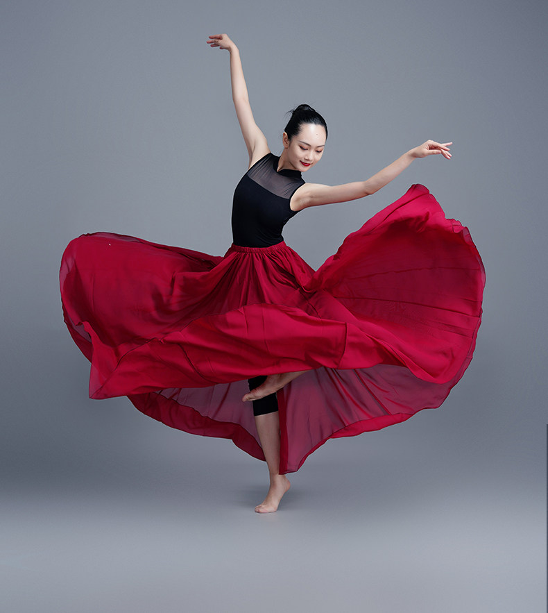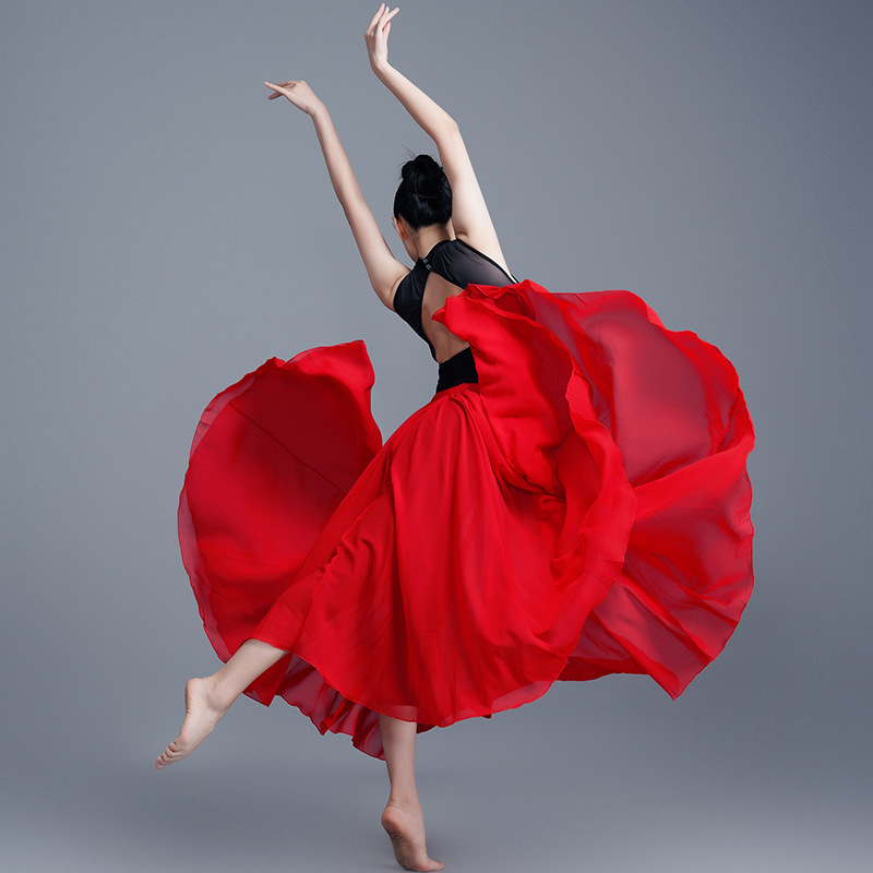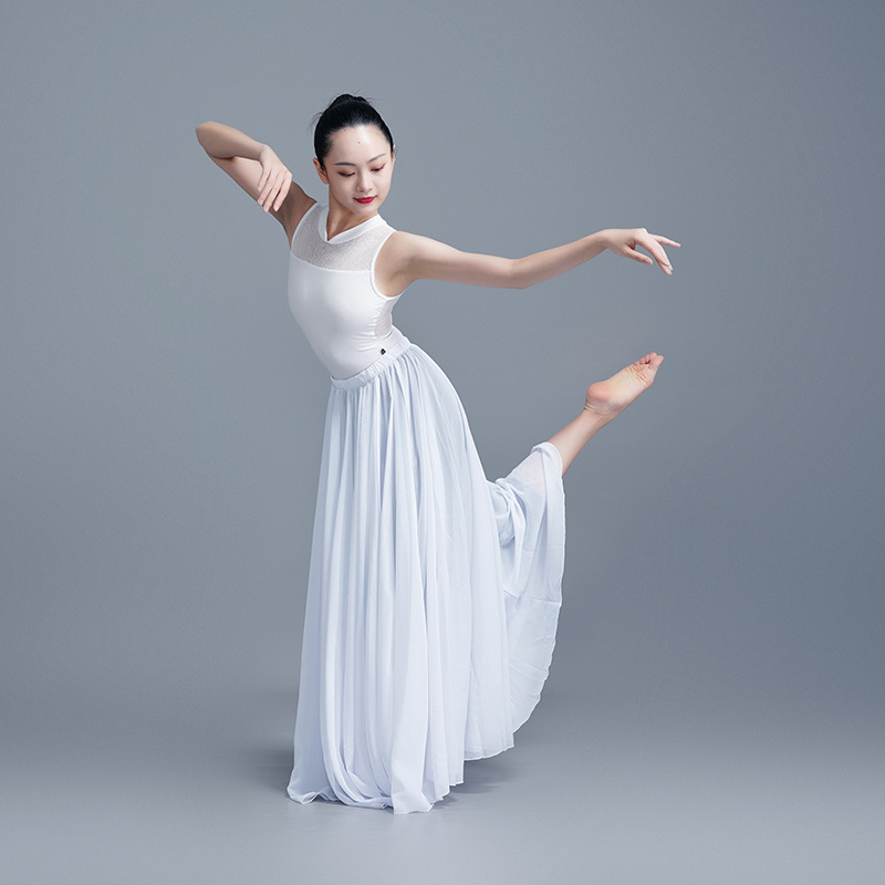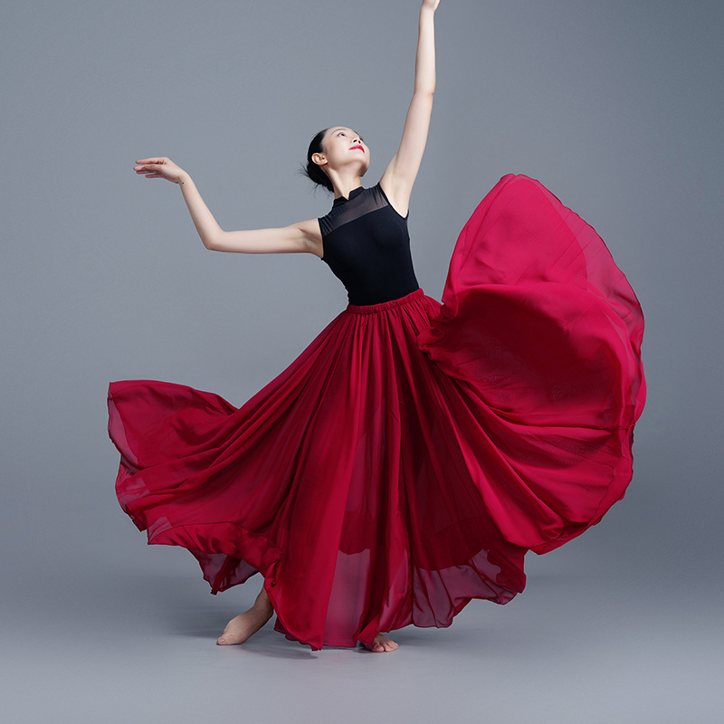 720 도 댄스 대형 원피스 신장 댄스 하프 길이 연습 원피스 현대 클래식 댄스 연습 원피스 쉬폰 롱 원피스