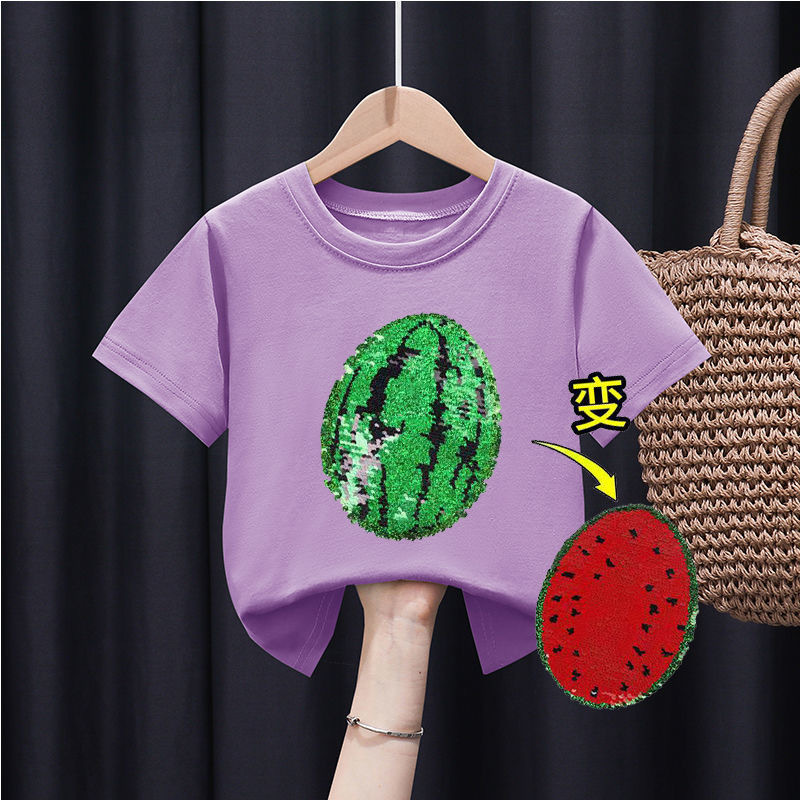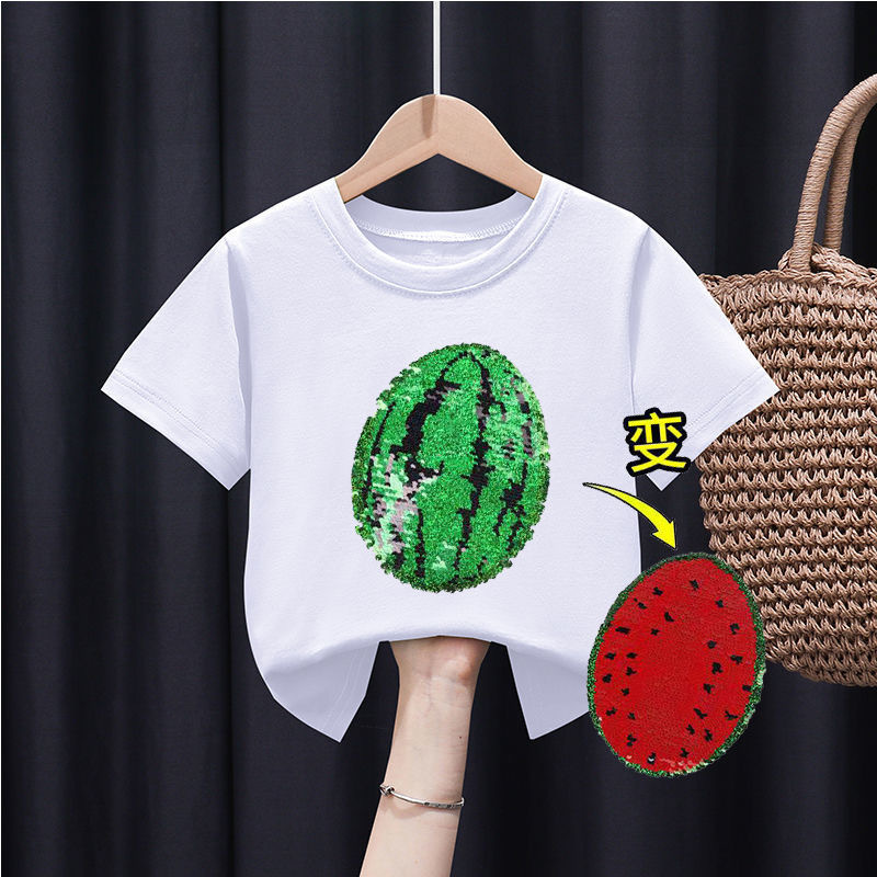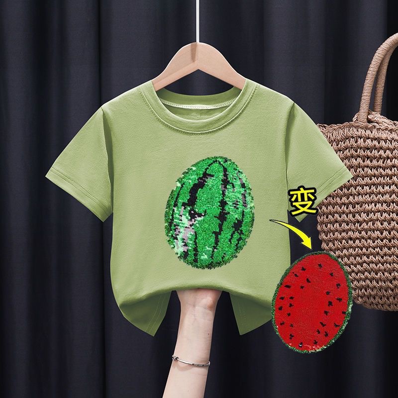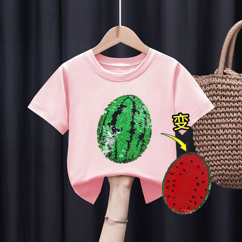 크로스 보더 아동복 아동 티셔츠 남아 반팔 티셔츠 소녀 스팽글 색상 변경 의류 대외 무역 여름 유럽 탑스토어 가기