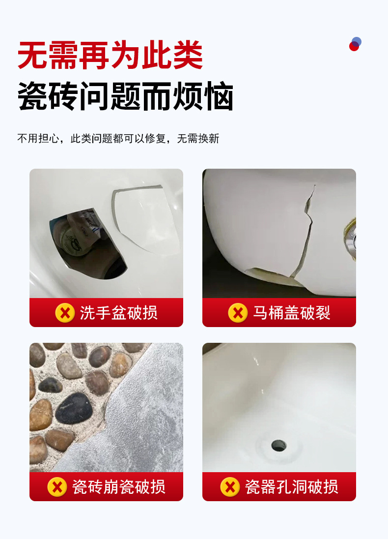 세라믹 타일 수리 에이전트 유리 세라믹 페이스트 균열 대리석 바닥 타일을 수리하여 못생긴 화장실 구멍 접착제를 숨기기 위해 구멍을 수정합니다.스토어 가기