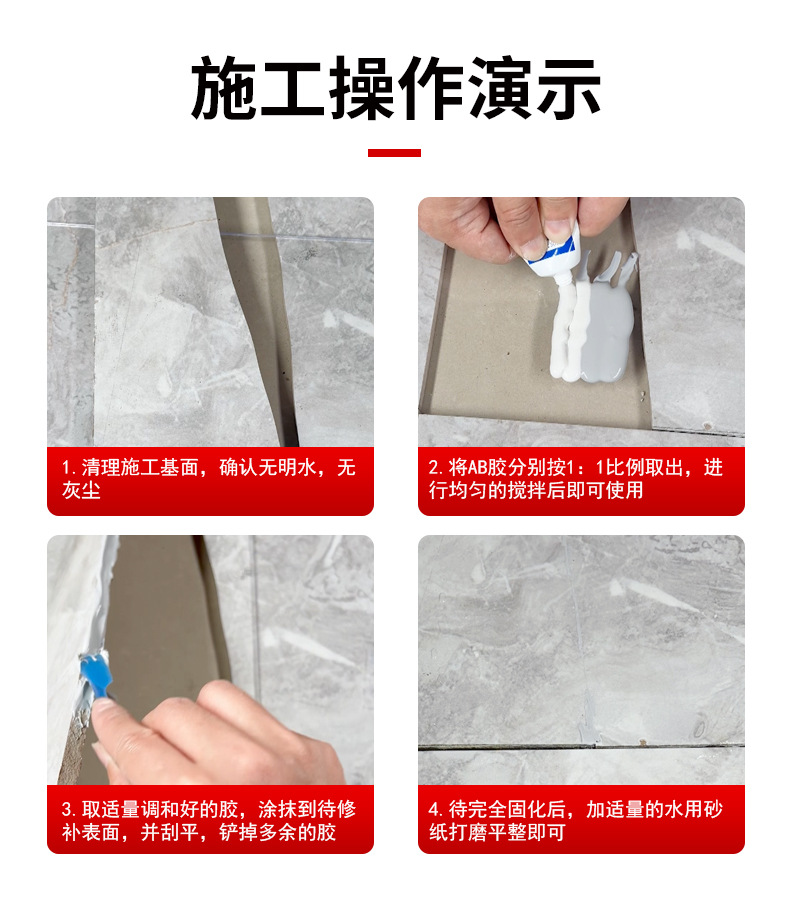 세라믹 타일 수리 에이전트 유리 세라믹 페이스트 균열 대리석 바닥 타일을 수리하여 못생긴 화장실 구멍 접착제를 숨기기 위해 구멍을 수정합니다.