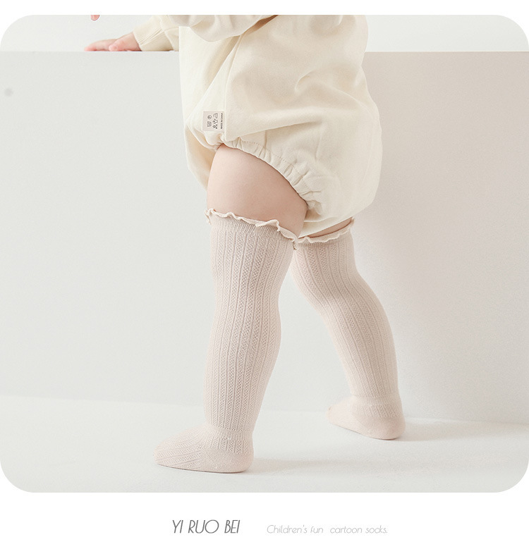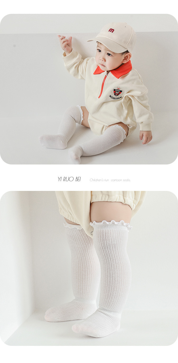 뼈없는 여름 얇은 면 단색 아기 메쉬 양말 신생아 및 어린 어린이 무릎 길이 느슨한 통기성 모기 방지