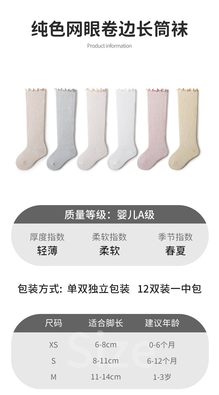 뼈없는 여름 얇은 면 단색 아기 메쉬 양말 신생아 및 어린 어린이 무릎 길이 느슨한 통기성 모기 방지스토어 가기