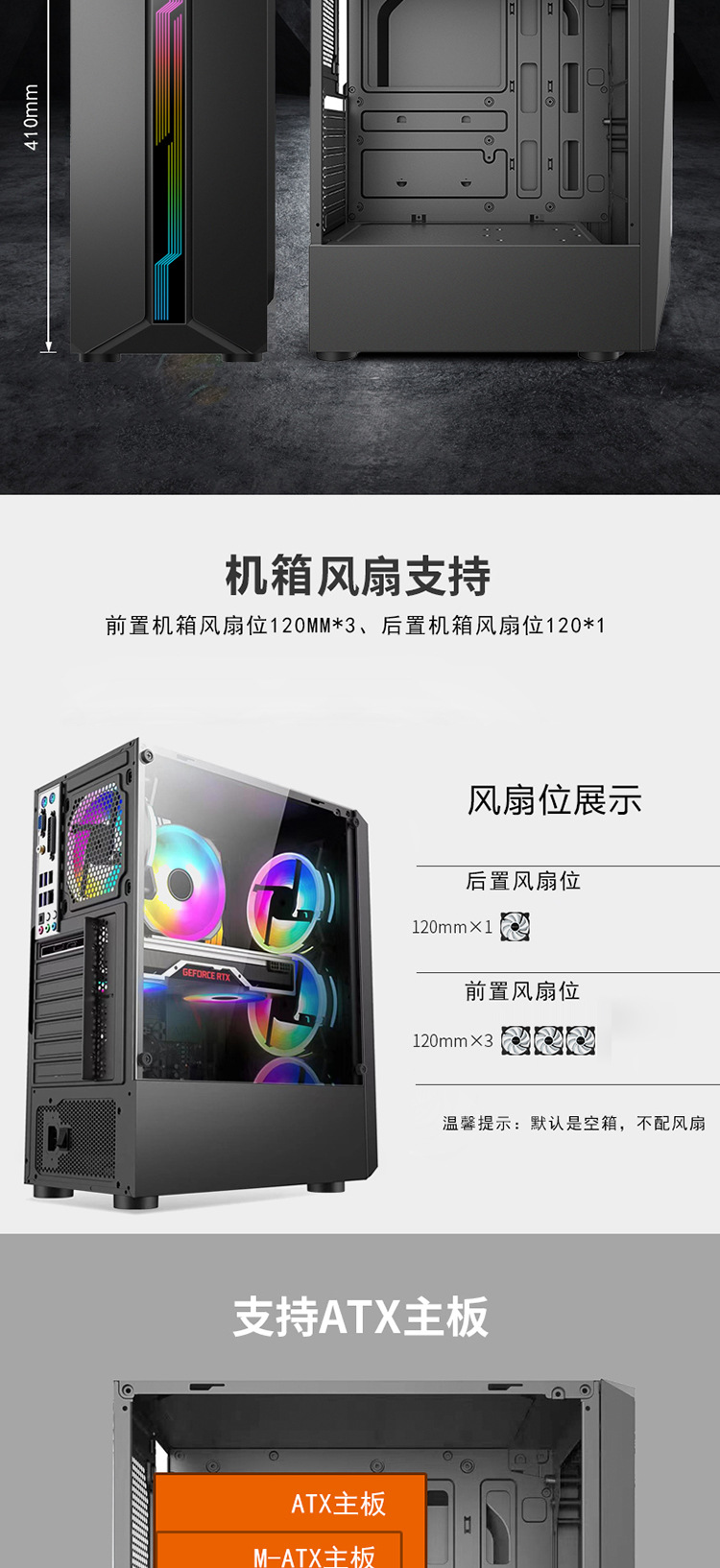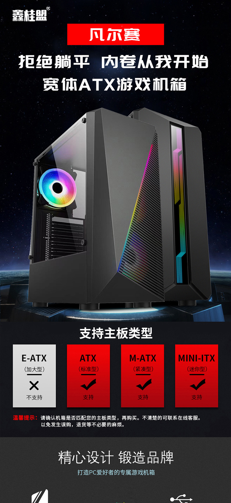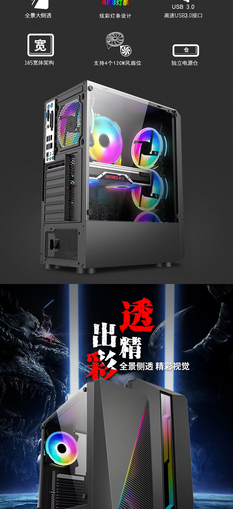 Xinguimeng 베르사이유 데스크탑 컴퓨터 섀시 독립적 인 전원 공급 장치 빈 게임 수냉식 ATX 섀시를 통해 전면