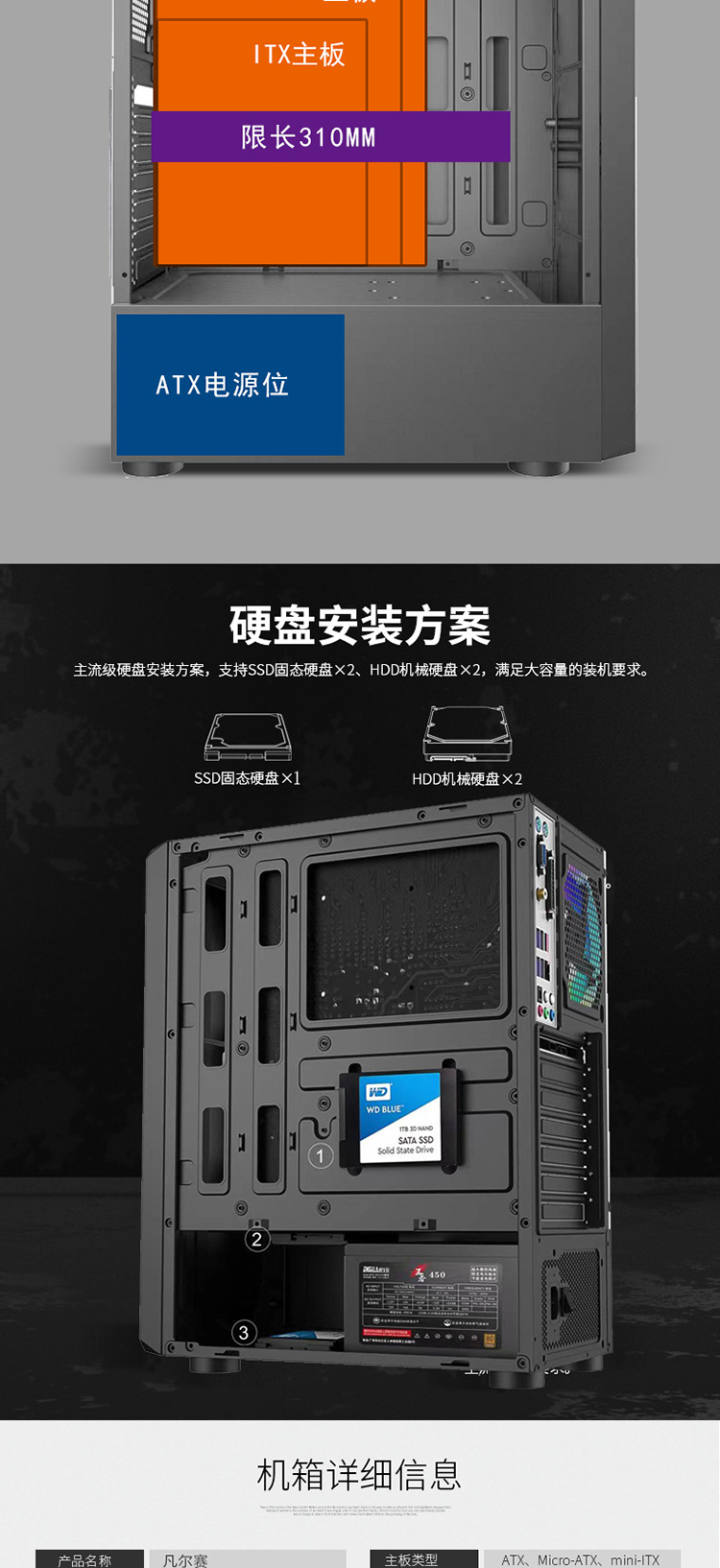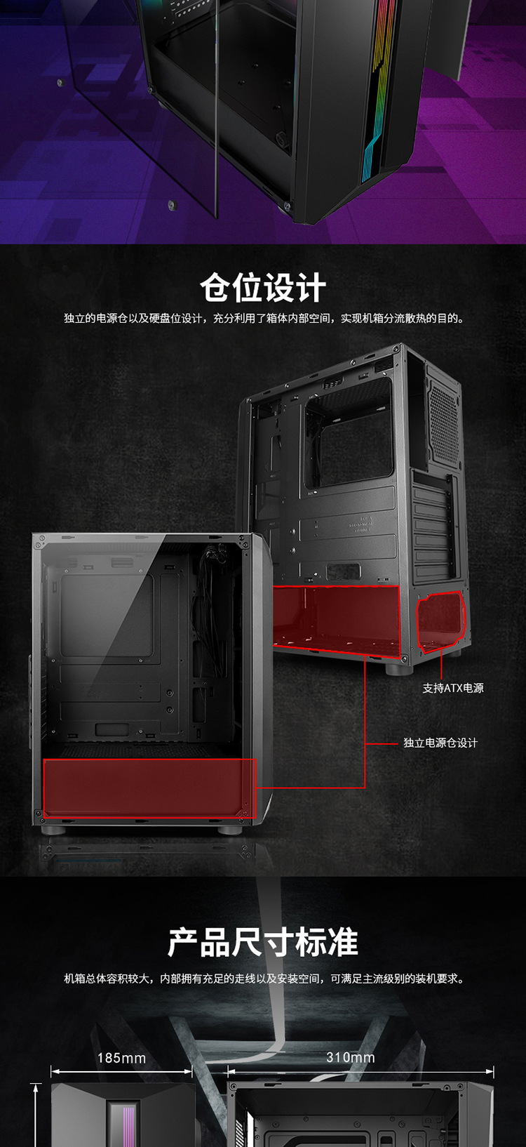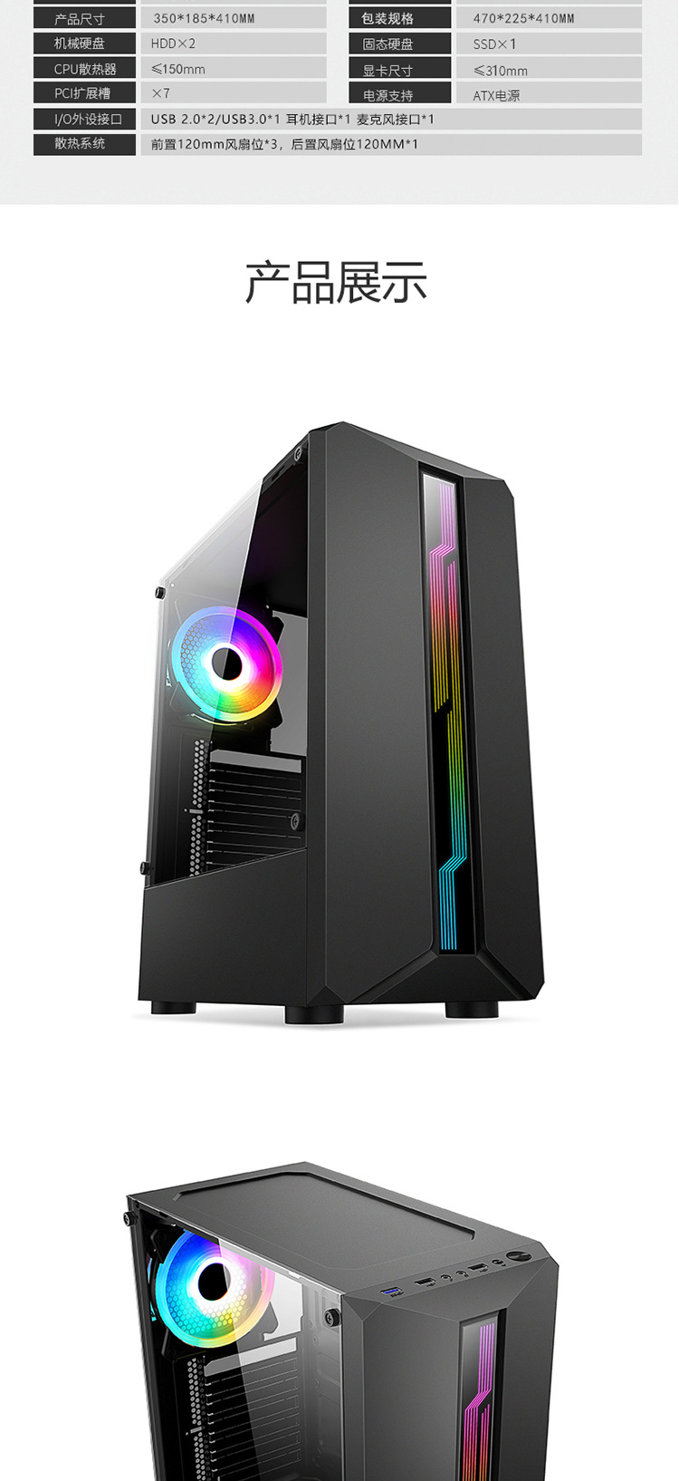 Xinguimeng 베르사이유 데스크탑 컴퓨터 섀시 독립적 인 전원 공급 장치 빈 게임 수냉식 ATX 섀시를 통해 전면