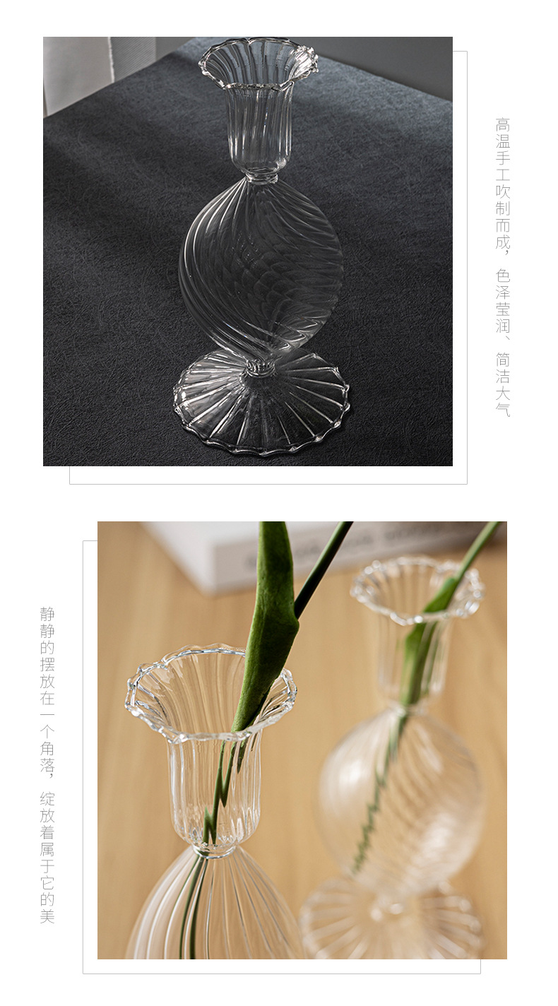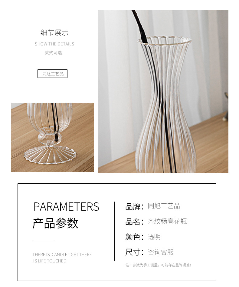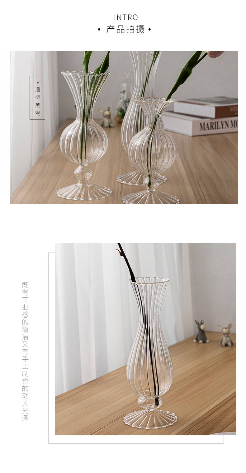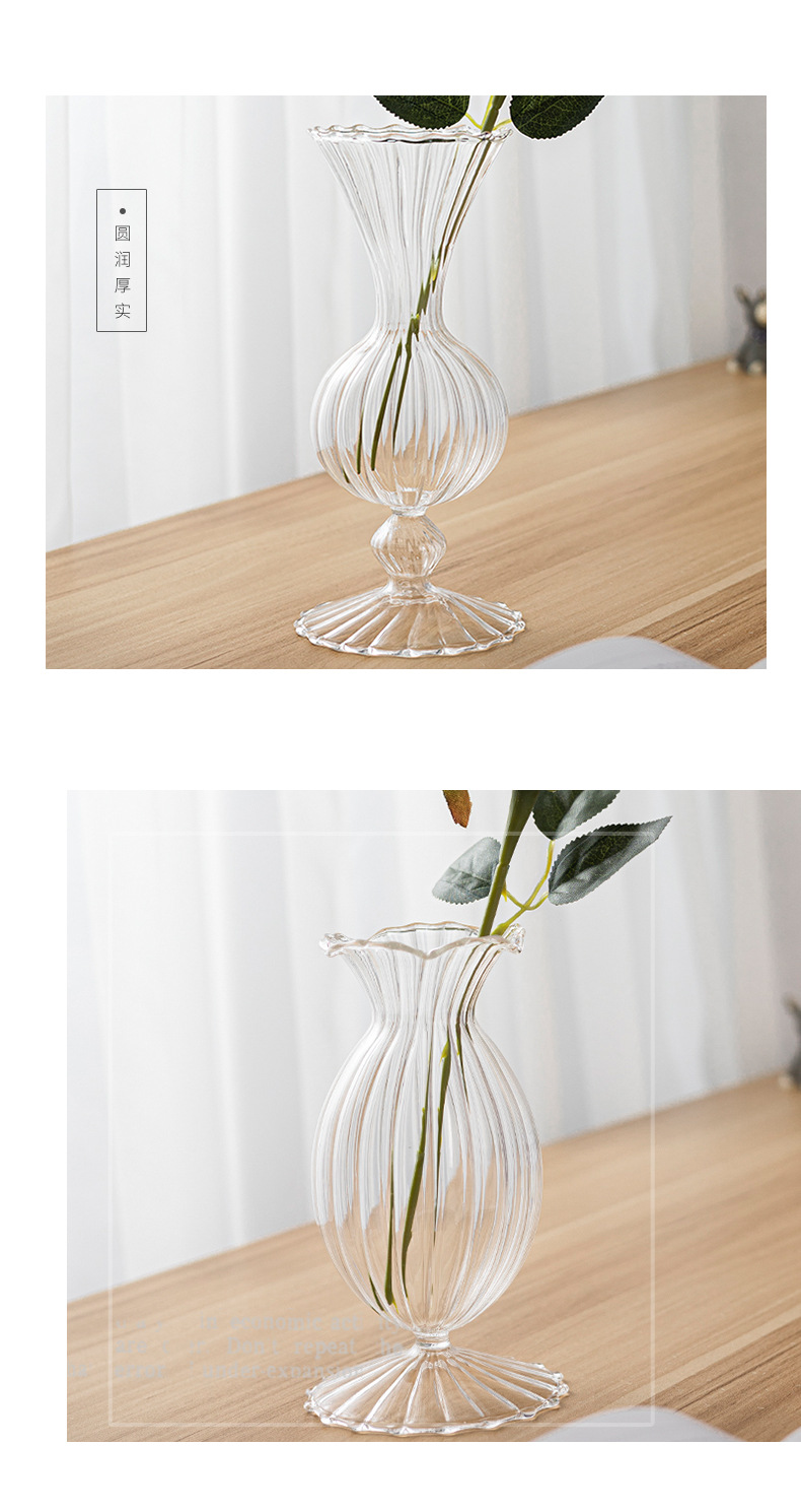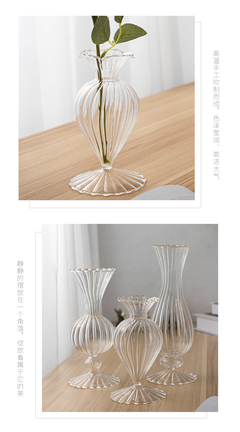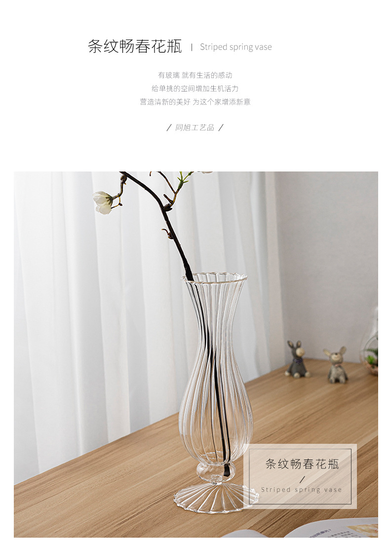 투명한 유럽식 하이 엔드 거실 장식품 간단한 줄무늬 꽃 배열 현관 바람 유리 꽃병 장식스토어 가기