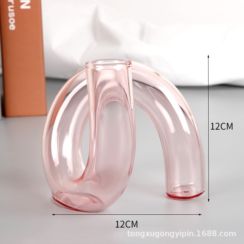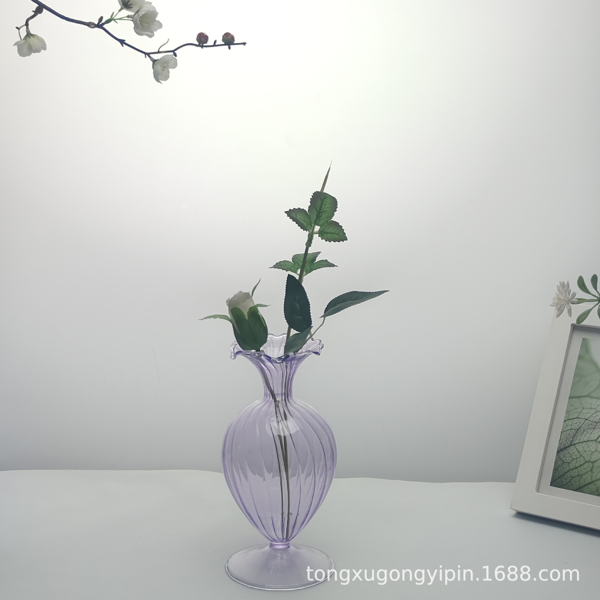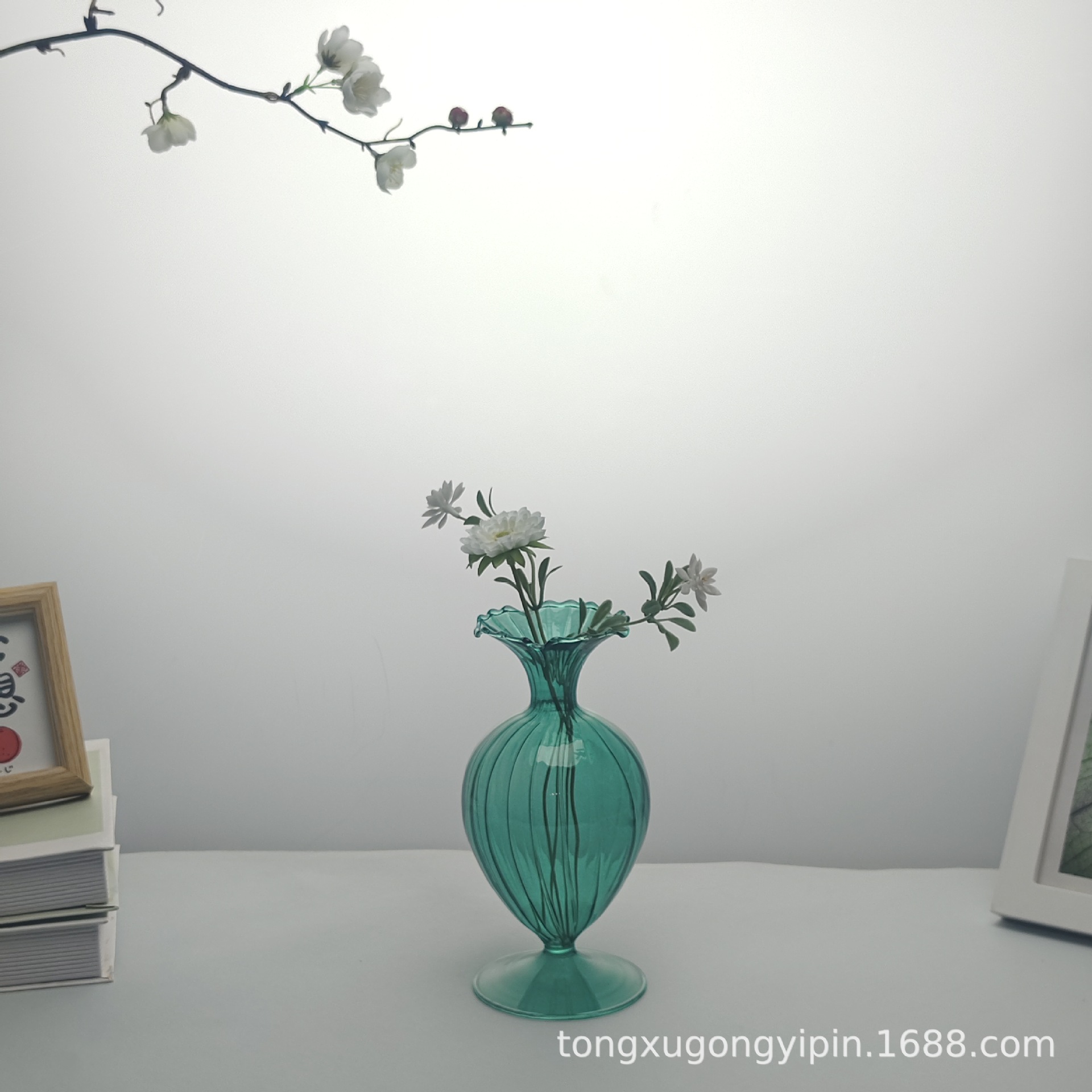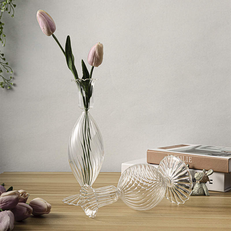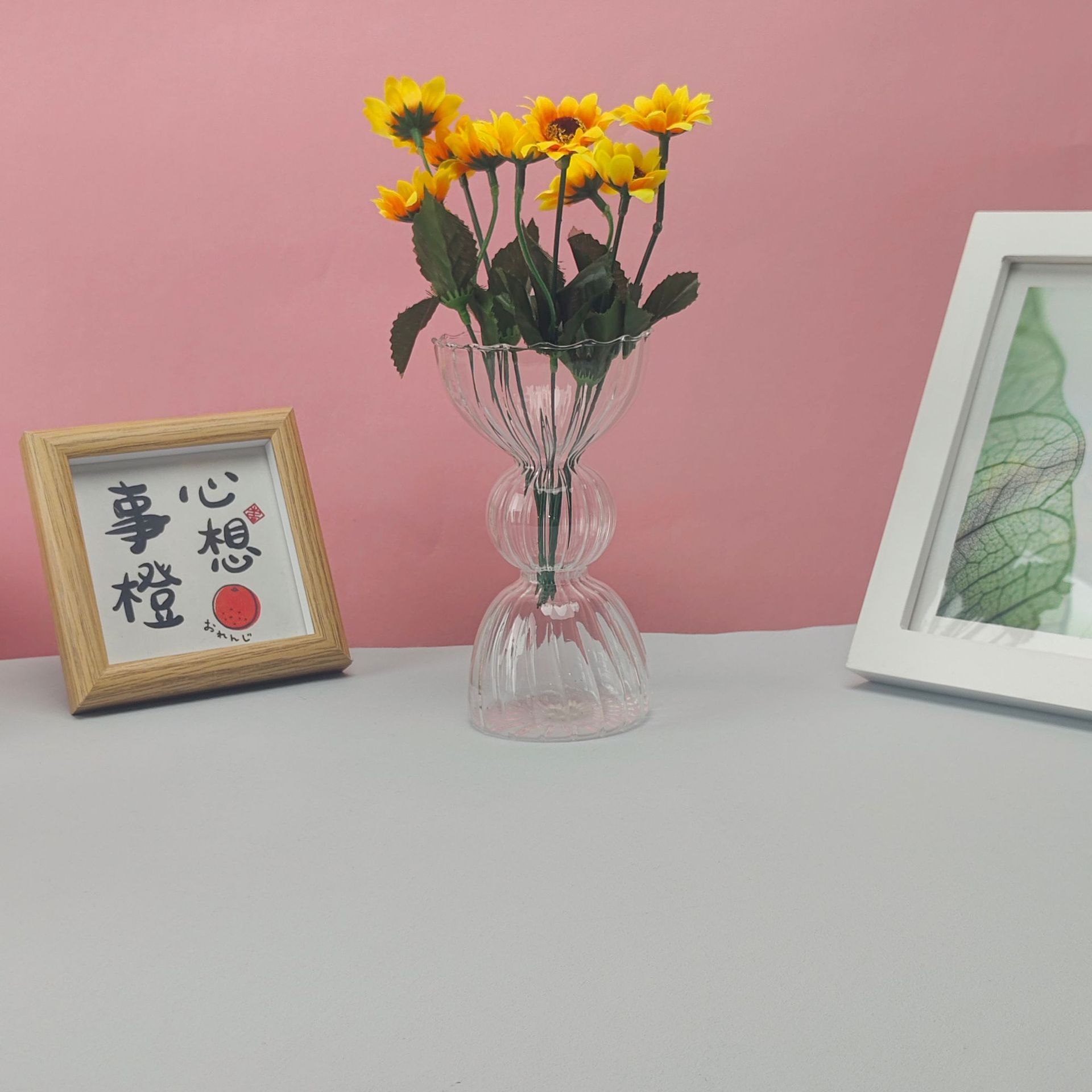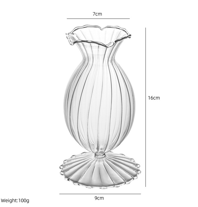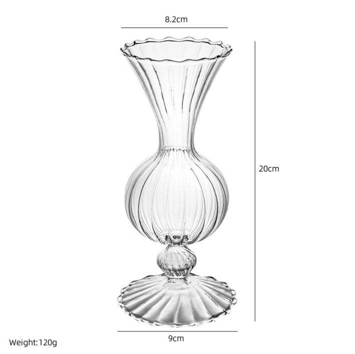 투명한 유럽식 하이 엔드 거실 장식품 간단한 줄무늬 꽃 배열 현관 바람 유리 꽃병 장식스토어 가기