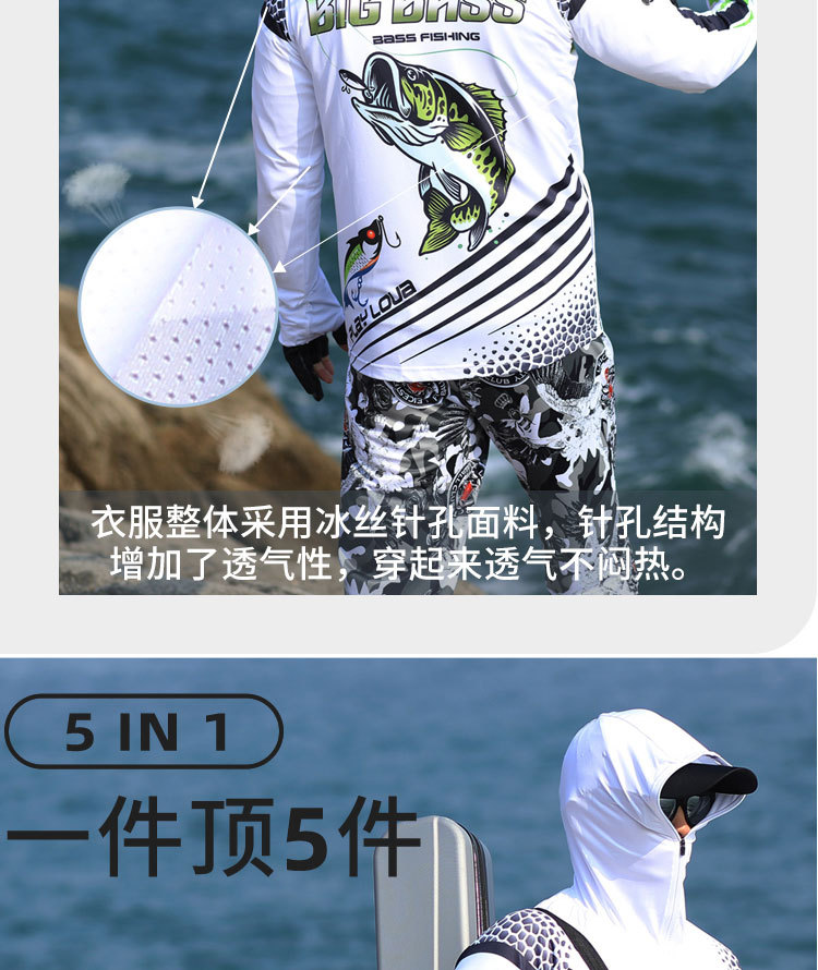 낚시 태양 보호 의류 남성 아이스 실크 낚시 의류 여름 루야 바다 낚시 아이스 실크 태양 보호 의류 낚시 태양 보호 의류 남성 통기성
