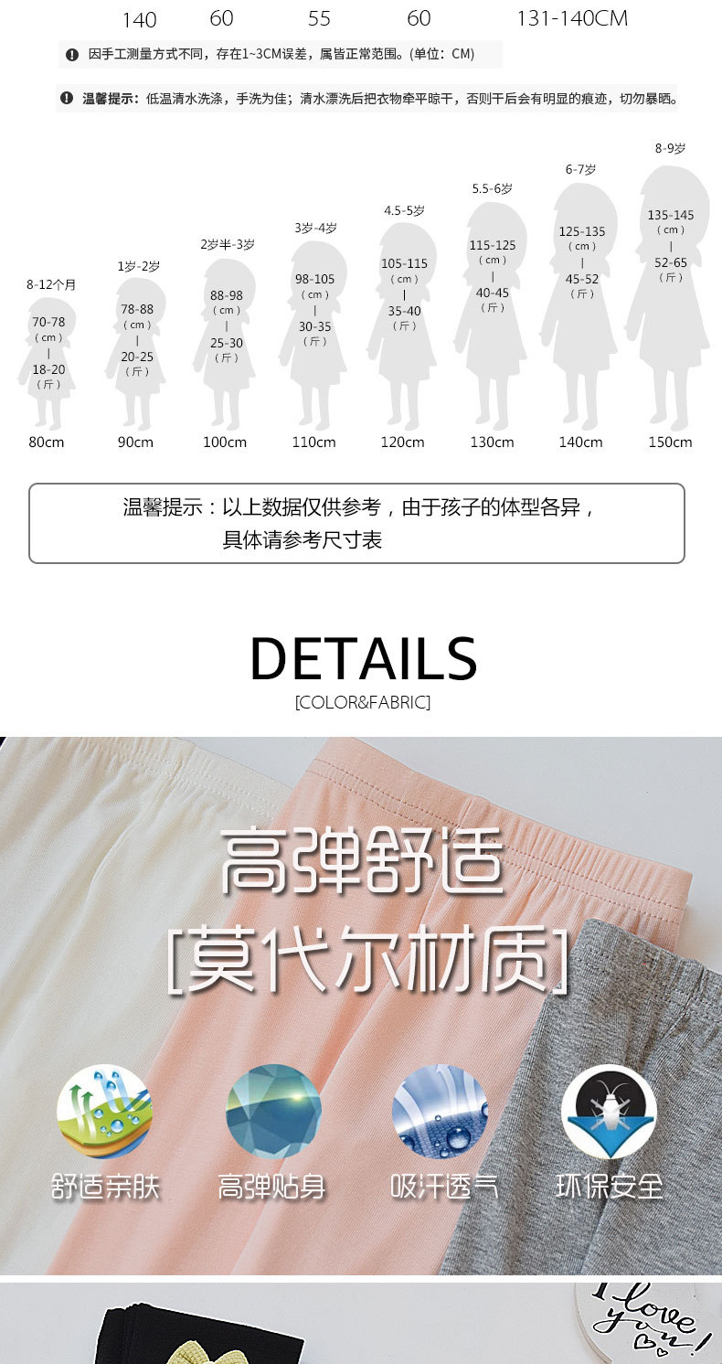여아 모달 카프리 팬츠 아기 소녀를위한 여름 얇은 레깅스 여름 어린이 한국식 중간 길이 바지 얇은 반 길이 바지