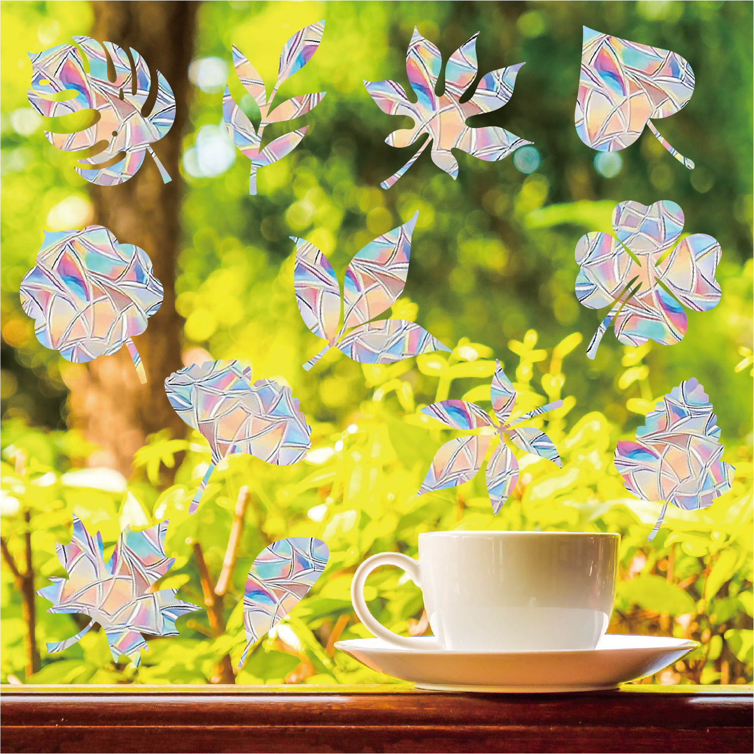 炫彩彩虹棱镜树叶窗贴