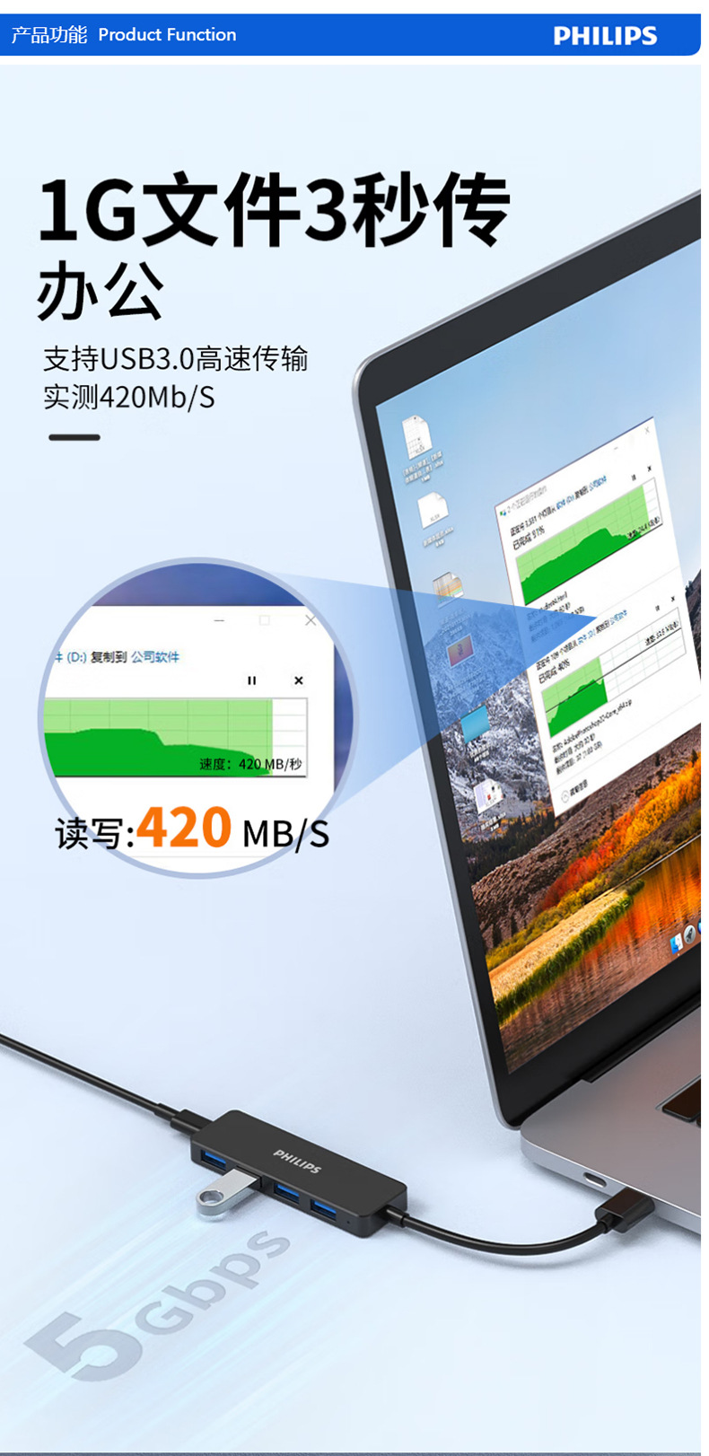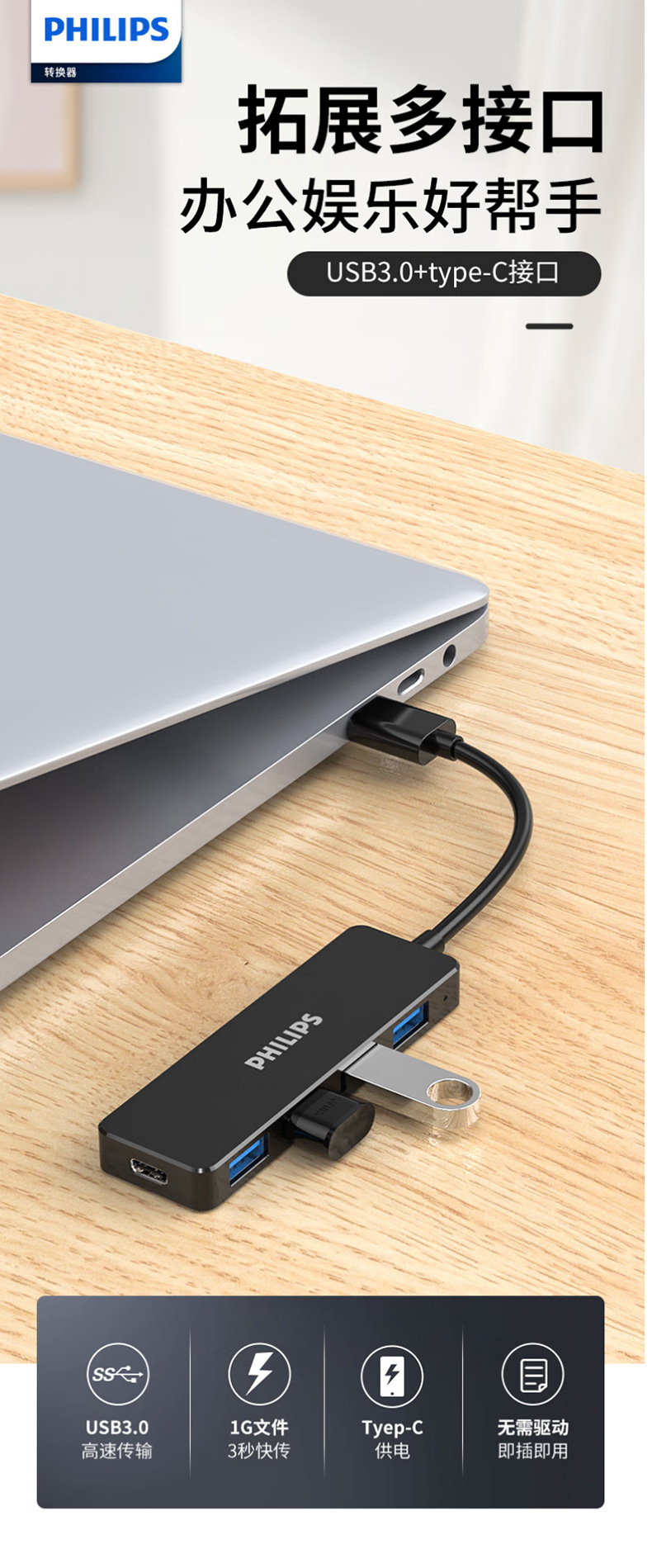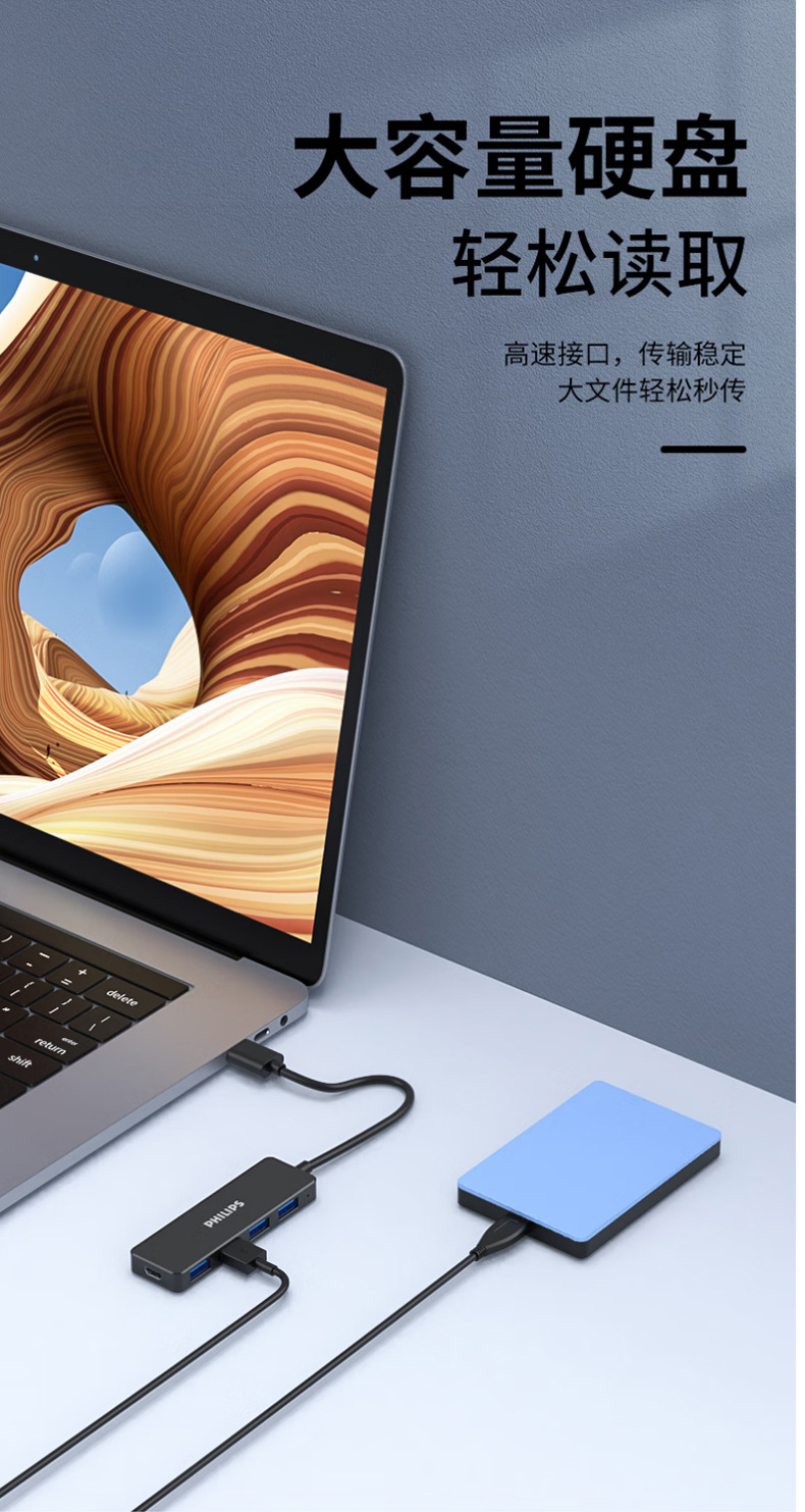 필립스 USB3.0 스플리터 도킹 스테이션 고속 확장 4 포트 허브 일대일 멀티 컨버터 도매스토어 가기