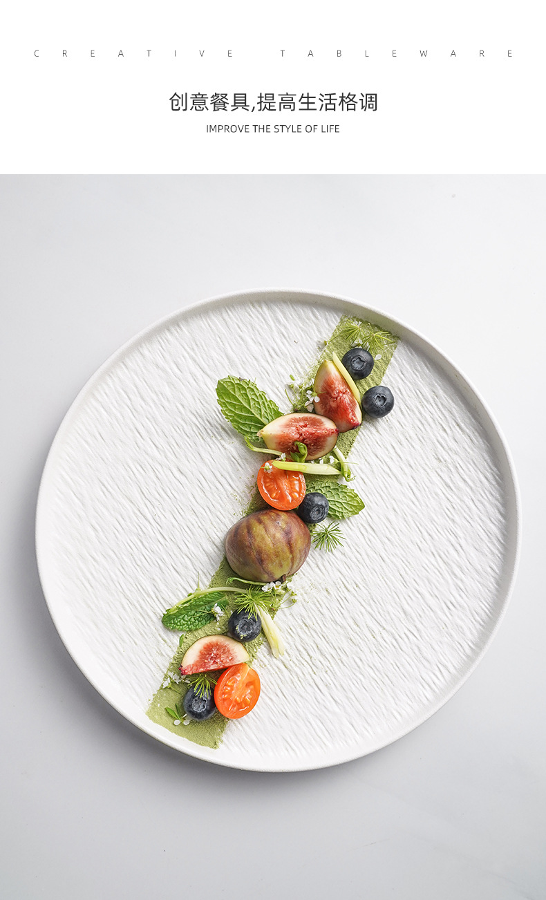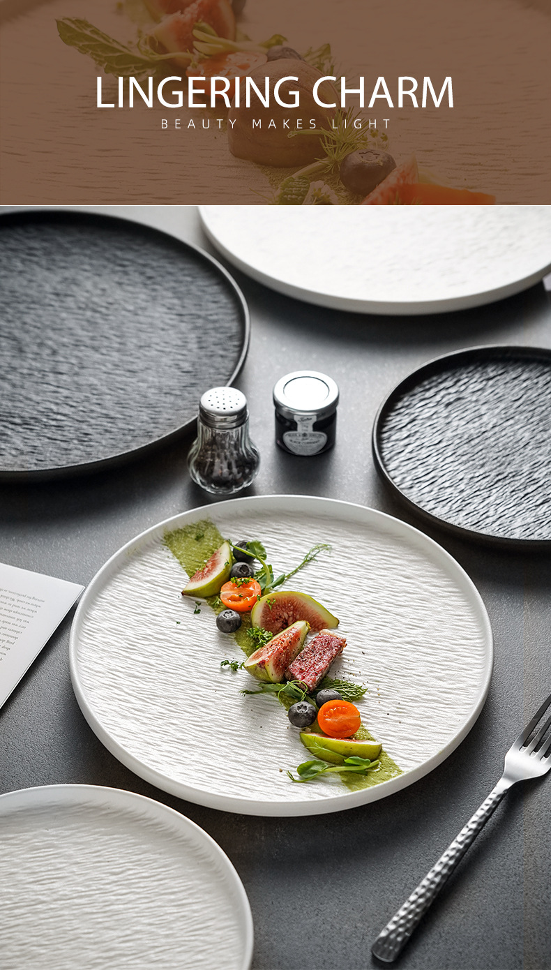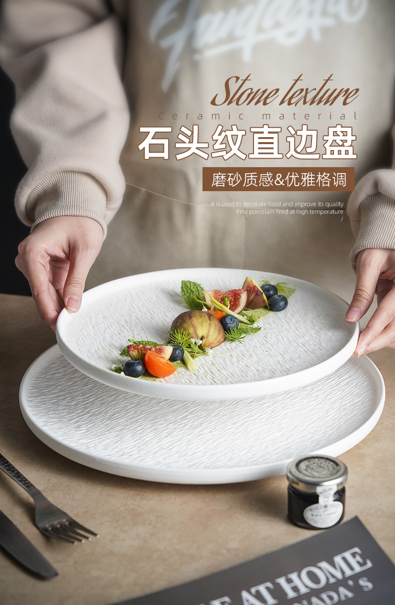 세라믹 일본 스타일 접시 창조적 인 화이트 샐러드 가벼운 럭셔리 스톤 패턴 서양 음식 접시 스테이크 식기 플레이트 레스토랑 상업