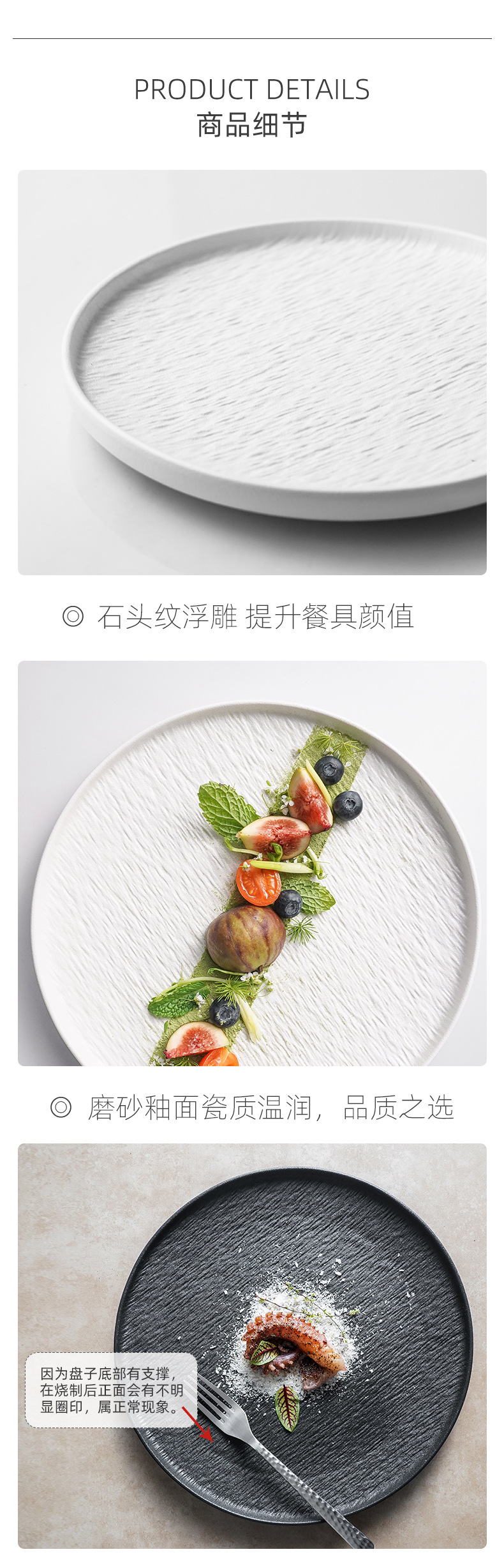 세라믹 일본 스타일 접시 창조적 인 화이트 샐러드 가벼운 럭셔리 스톤 패턴 서양 음식 접시 스테이크 식기 플레이트 레스토랑 상업스토어 가기