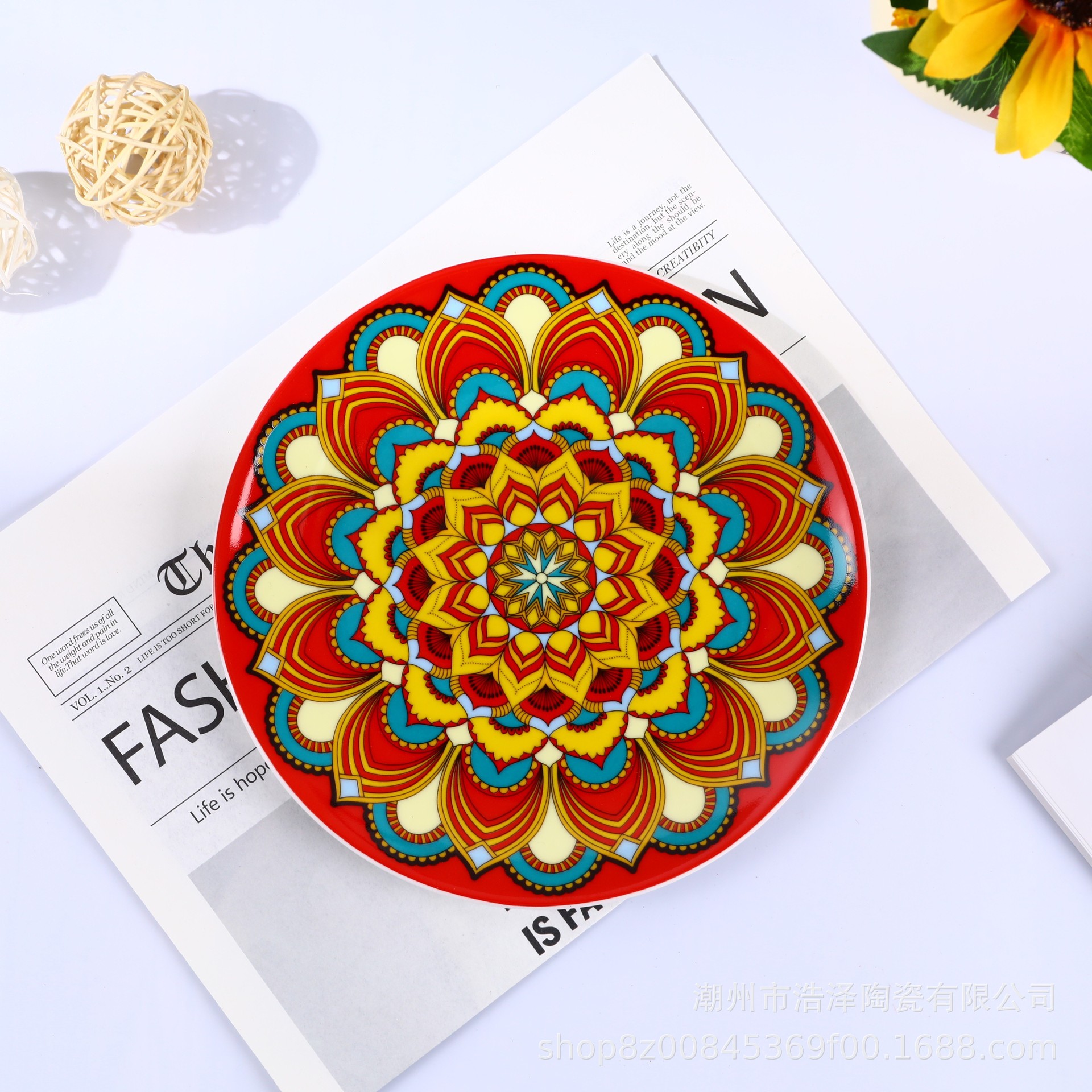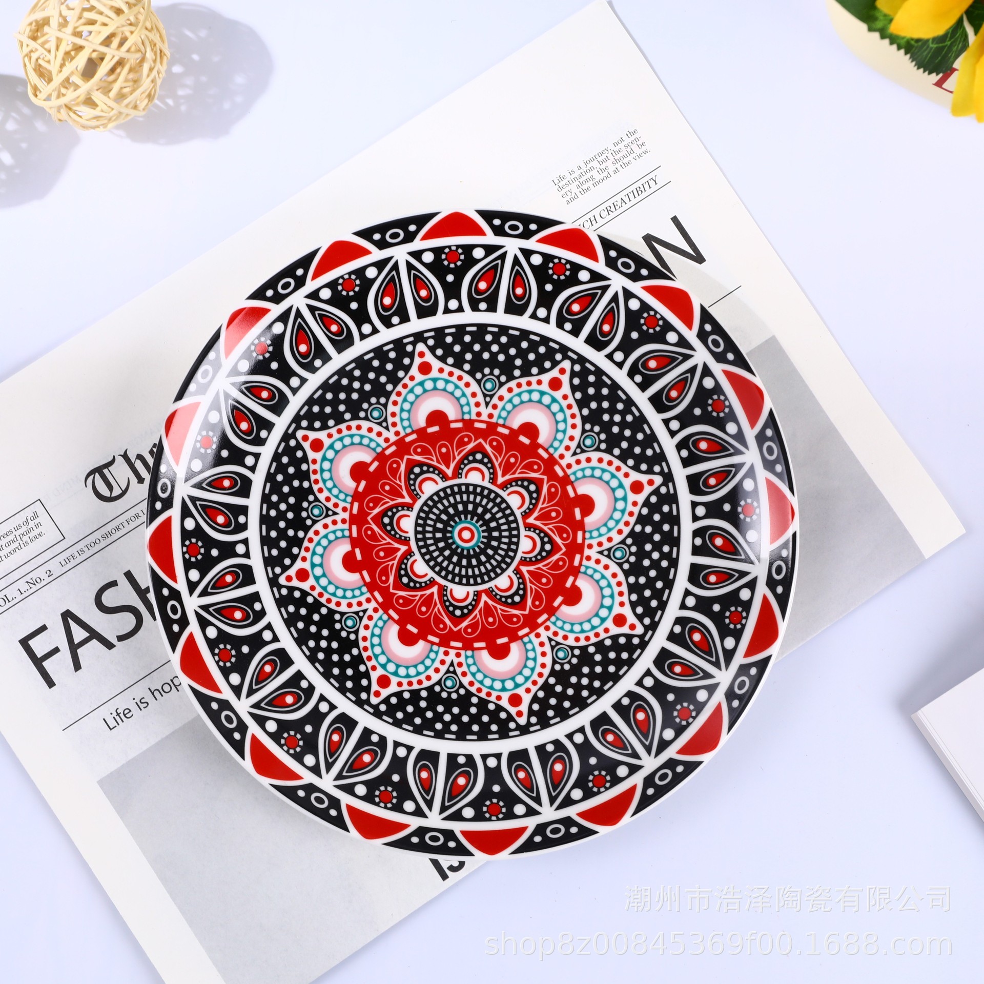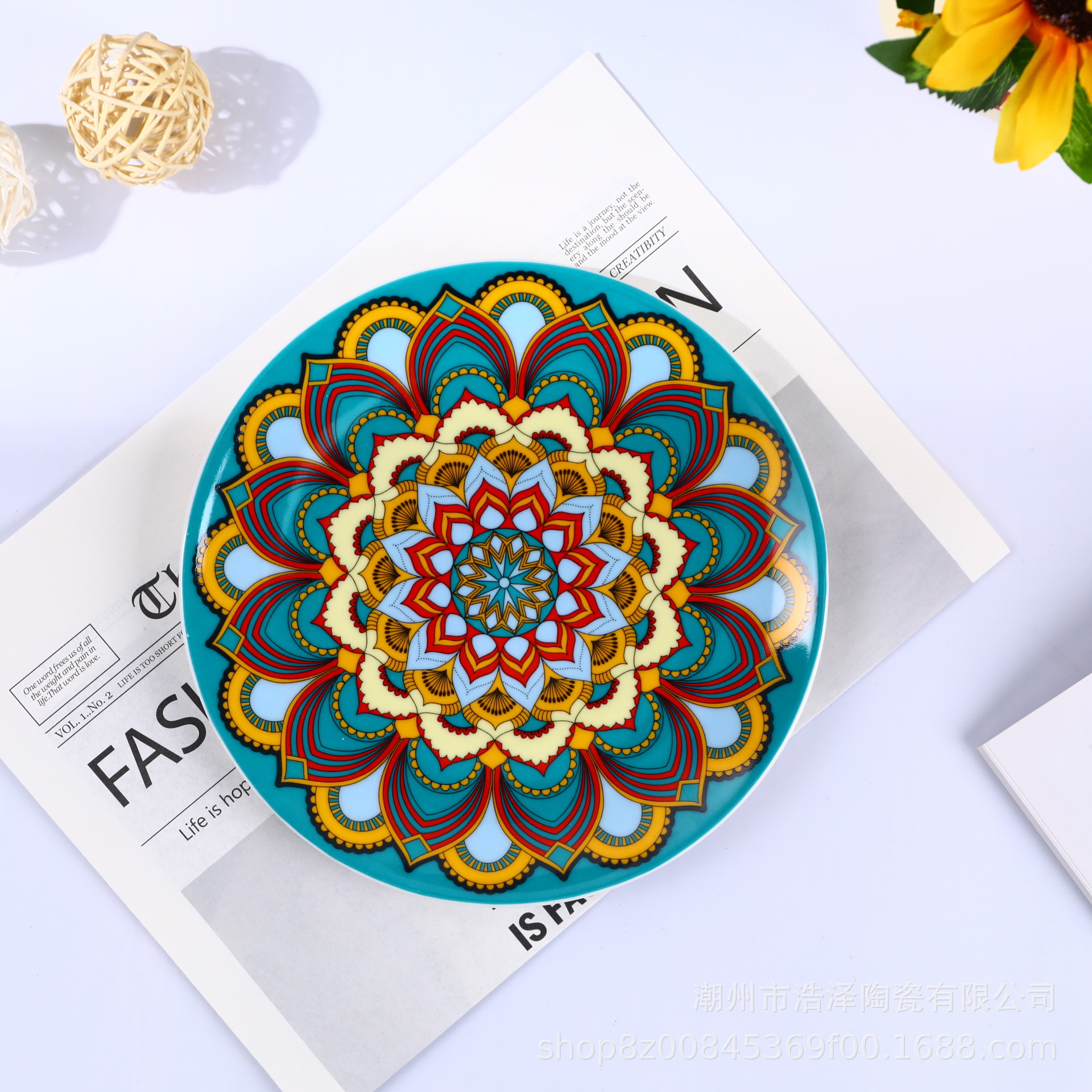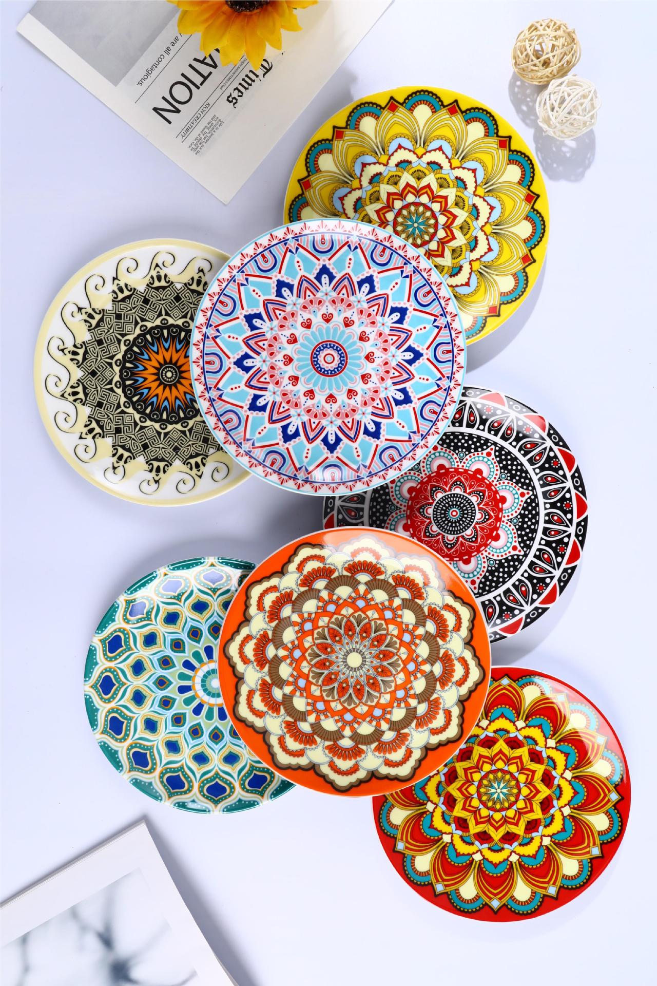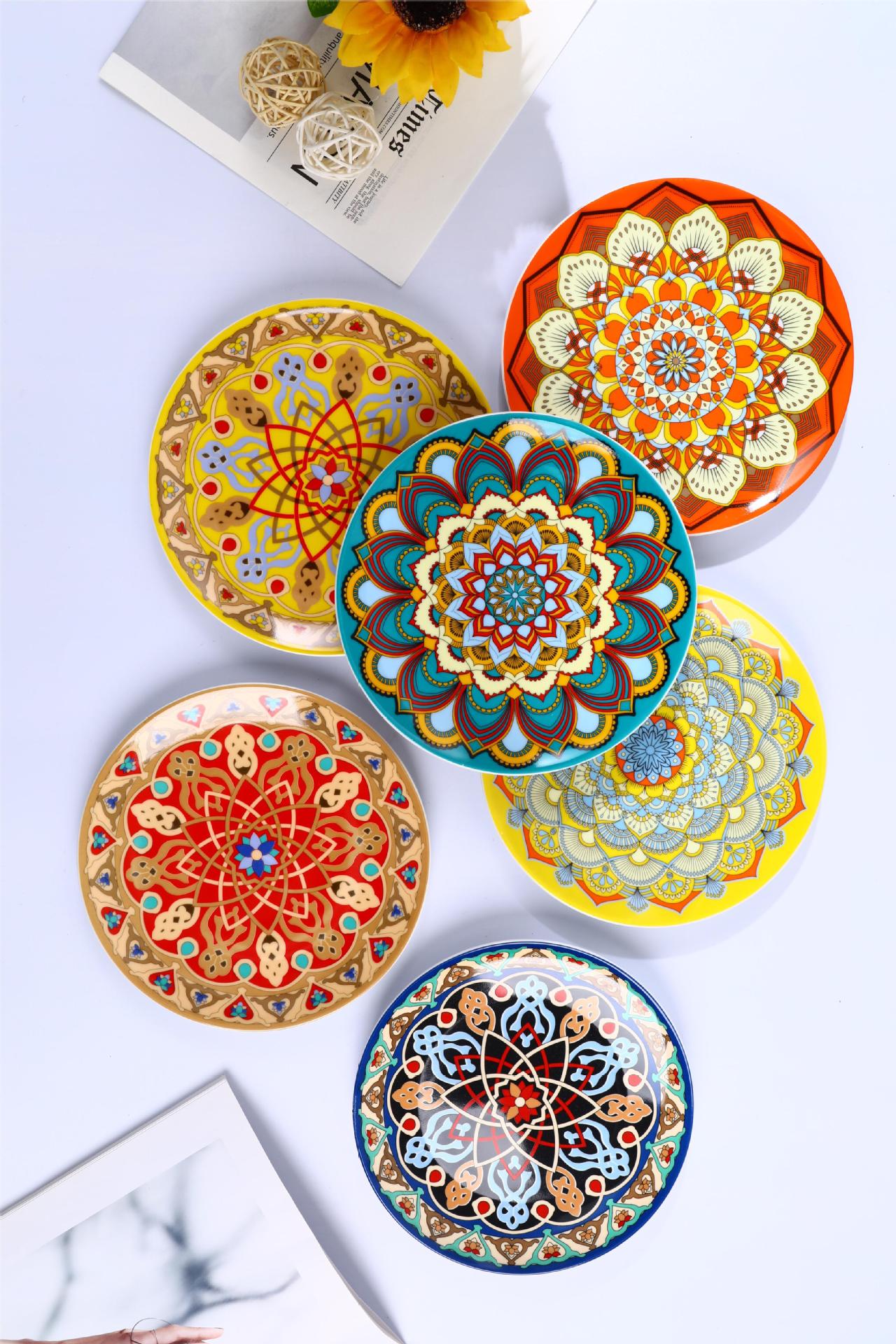 유럽 스타일 세라믹 식기 보헤미안 스타일 플랫 플레이트 가정용 접시 2023 새로운 스타일 식기 북유럽 스타일 창조적 인 세라믹 접시