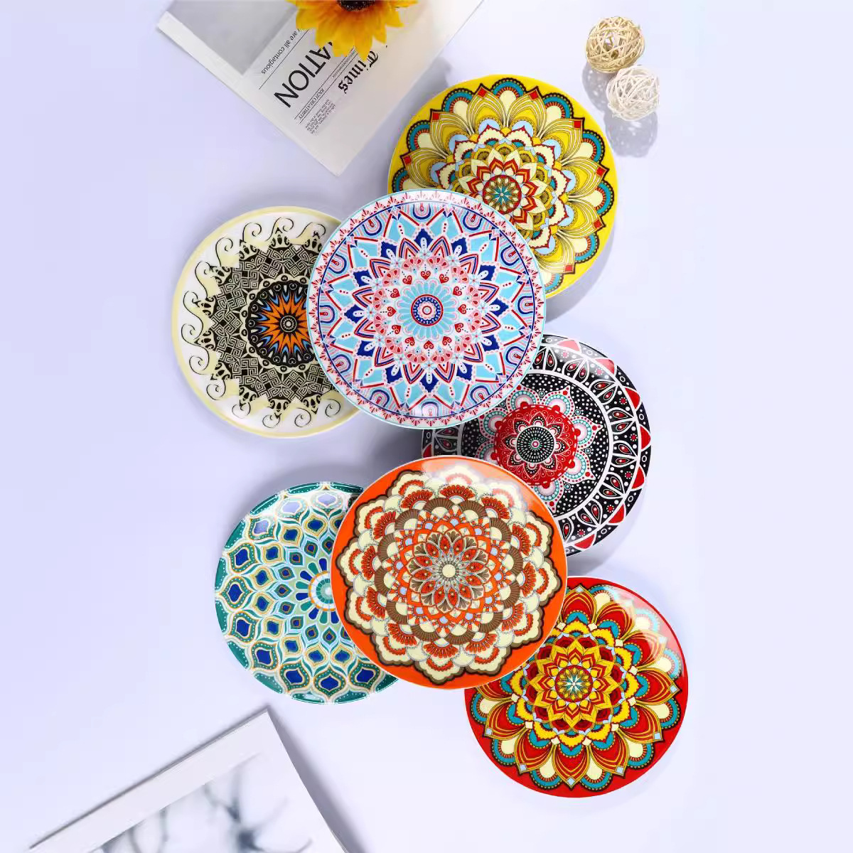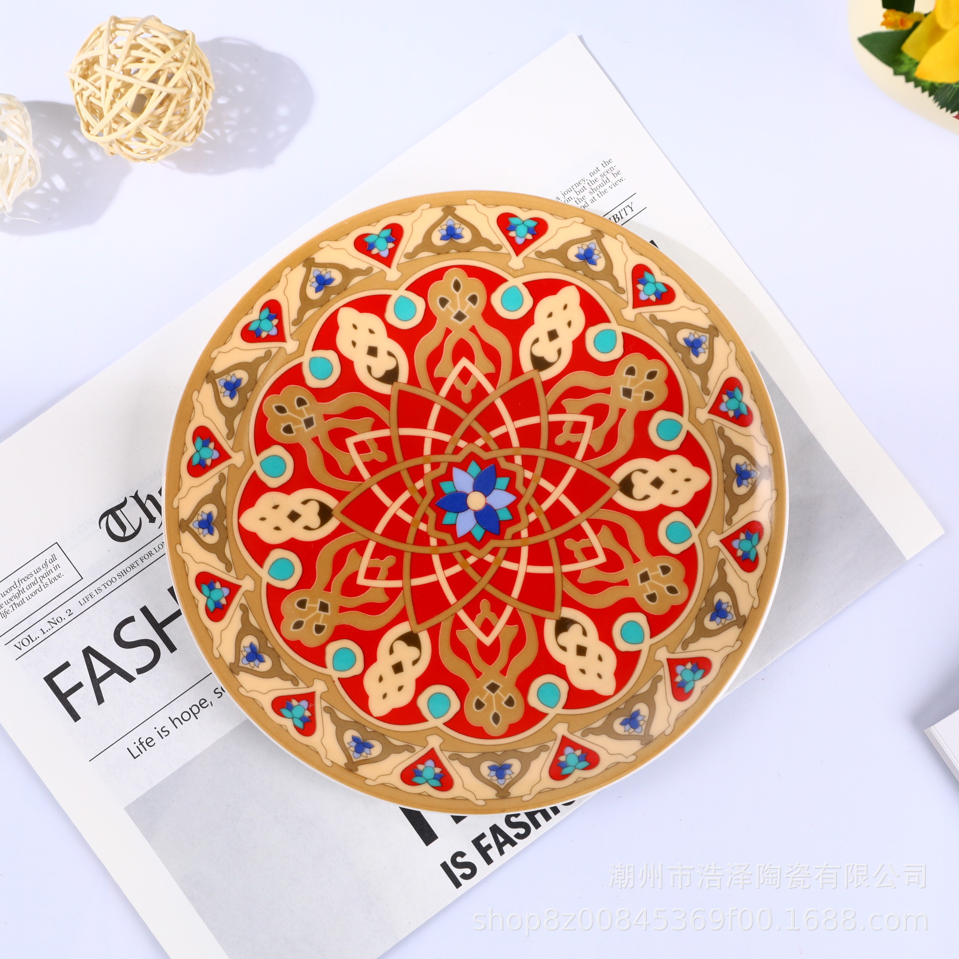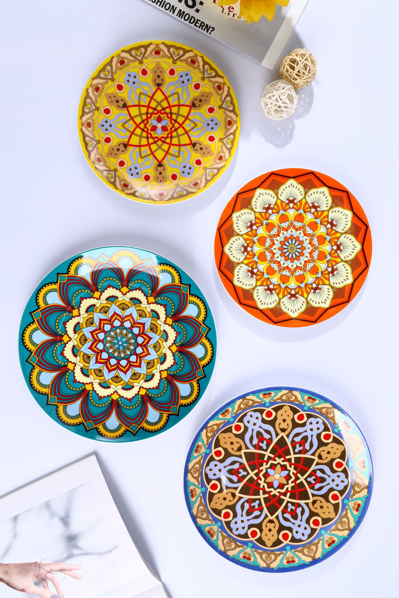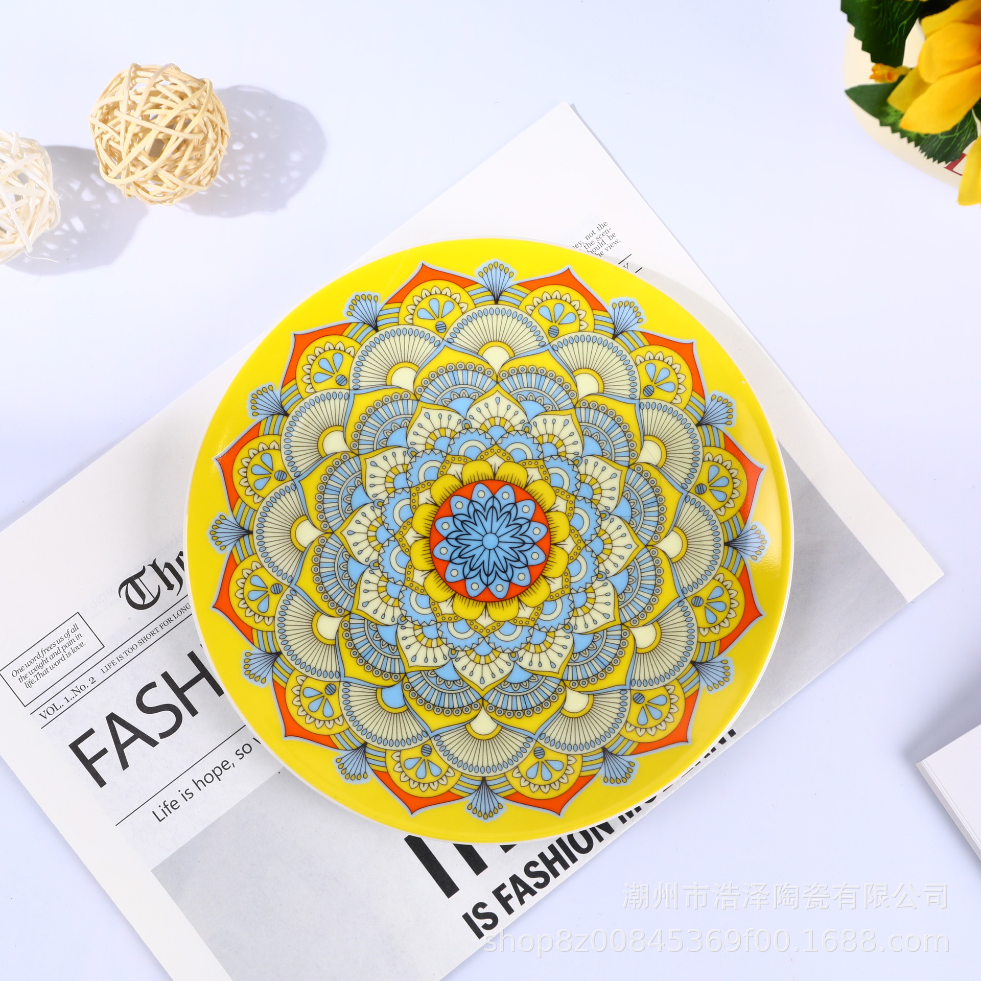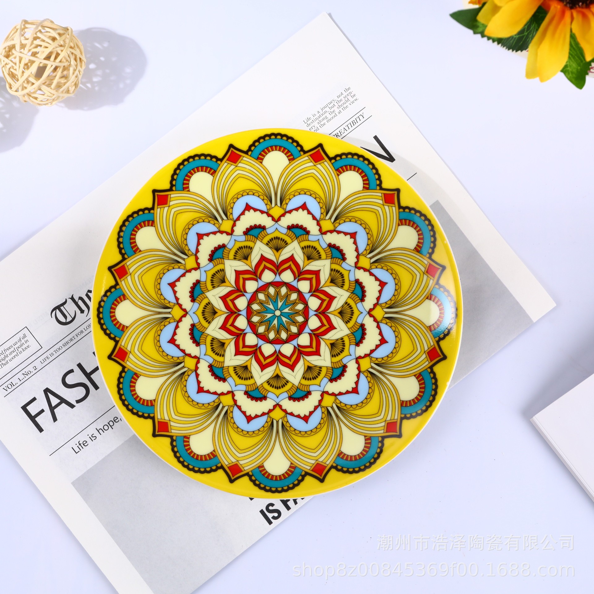 유럽 스타일 세라믹 식기 보헤미안 스타일 플랫 플레이트 가정용 접시 2023 새로운 스타일 식기 북유럽 스타일 창조적 인 세라믹 접시