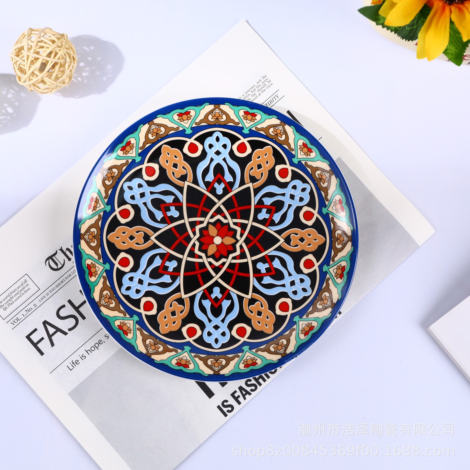 유럽 스타일 세라믹 식기 보헤미안 스타일 플랫 플레이트 가정용 접시 2023 새로운 스타일 식기 북유럽 스타일 창조적 인 세라믹 접시스토어 가기