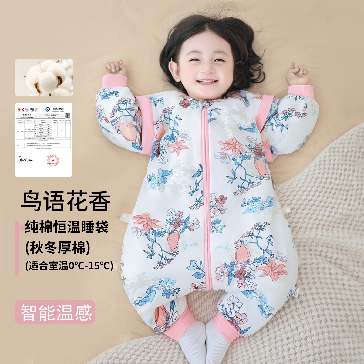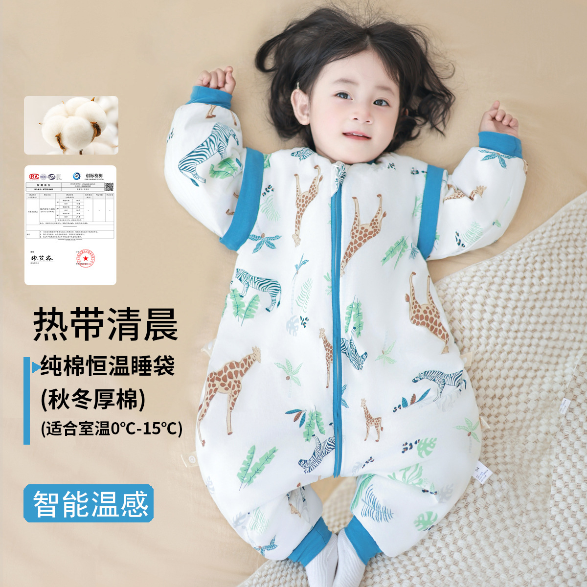 아기 수면조끼 봄, 가을, 겨울용 두꺼운 분리형 다리형 온도조절 수면조끼 어린이 발차기 방지 이불 사계절 사용 가능
